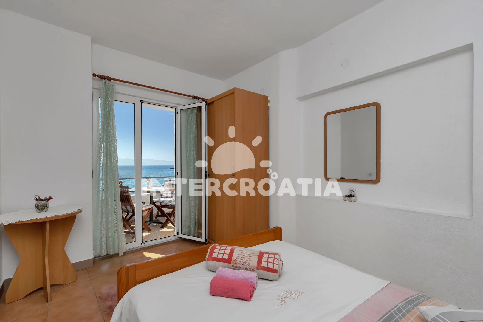 Apartmán (43 m2) s balkonem, a výhledem na moře. Nachází se v 1. patře objektu. Apartmán má 2 ložnice a je vhodný pro až 4 osoby. Kuchyňská linka je vybavena varnou deskou, nádobím, lednicí, mrazákem…