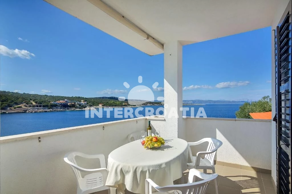 Apartmán (130 m2) s balkonem, a výhledem na moře. Nachází se ve 2. patře objektu. Apartmán má 3 ložnice a je vhodný pro až 8 osob. Kuchyňská linka je vybavena varnou deskou, troubou, nádobím, lednicí…