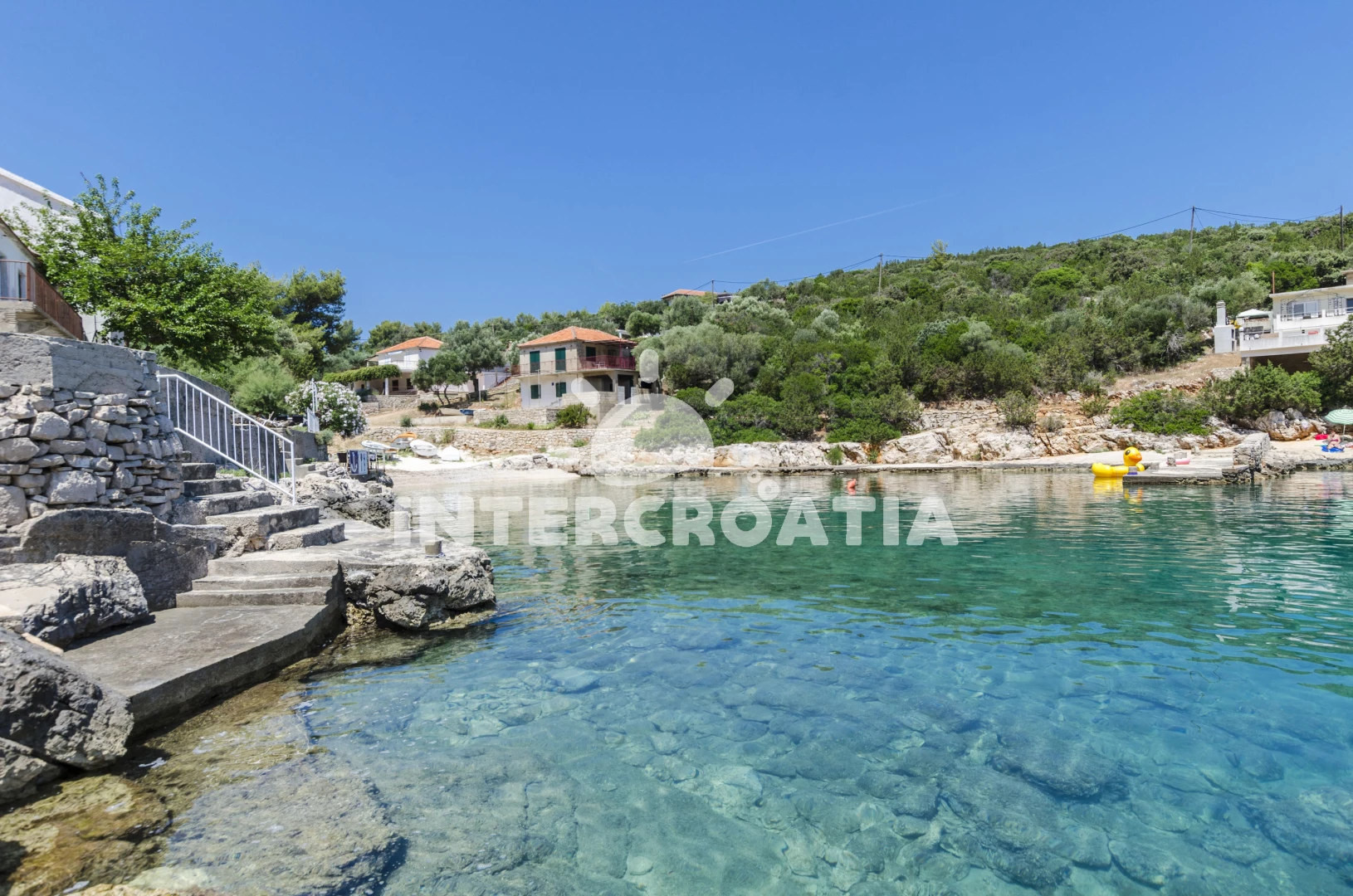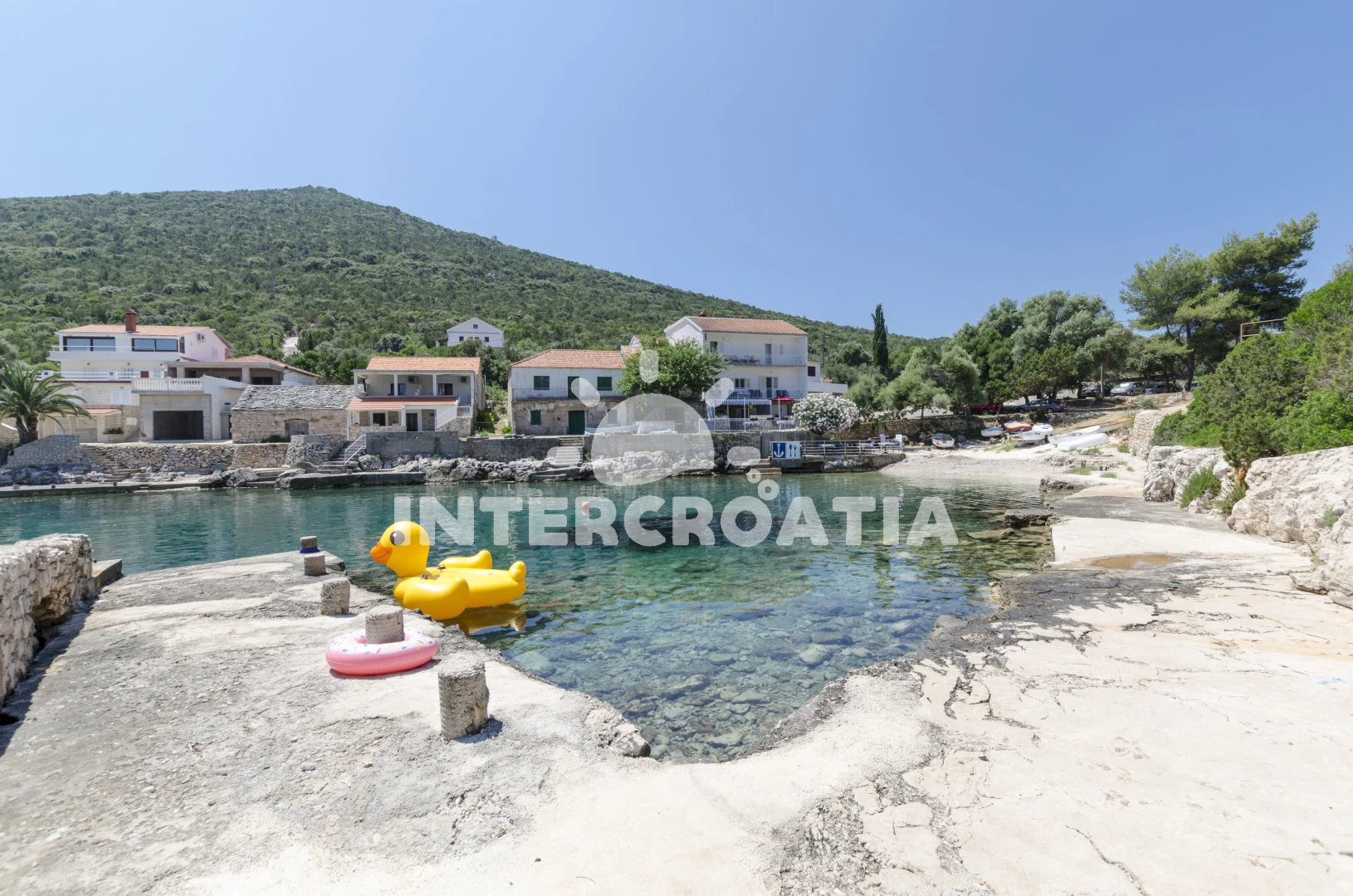 Vzdálenosti: Moře 10 m, pláž 10 m (oblázková a větší kamení), kotviště pro čluny 10 m, restaurace 10 m, bar 20 m, supermarket 200 m, pošta 5 km, centrum 6 km, tenisové kurty 25 km, čerpací stanice 25 km, směnárna 25 km, ambulance 25 km, lékárna 25 km, diskotéka 25 km, trajekt (Sućuraj) 25 km, potápění 25 km, banka 25 km, marina 30 km,