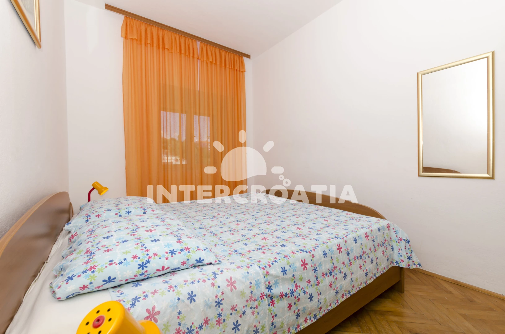Apartmán (93 m2) s balkonem, a výhledem na moře. Nachází se v 1. patře objektu. Apartmán má 3 ložnice a je vhodný pro až 6 osob. Kuchyňská linka je vybavena varnou deskou, troubou, kávovarem, mikrovlnnou troubou, nádobím, lednicí, mrazákem. K dispozici televize se satelitním programem, radio. První ložnice s dvoulůžkem. Druhá ložnice s dvoulůžkem. Třetí ložnice s dvoulůžkem. Koupelna s vanou, umyvadlem, fénem a WC.