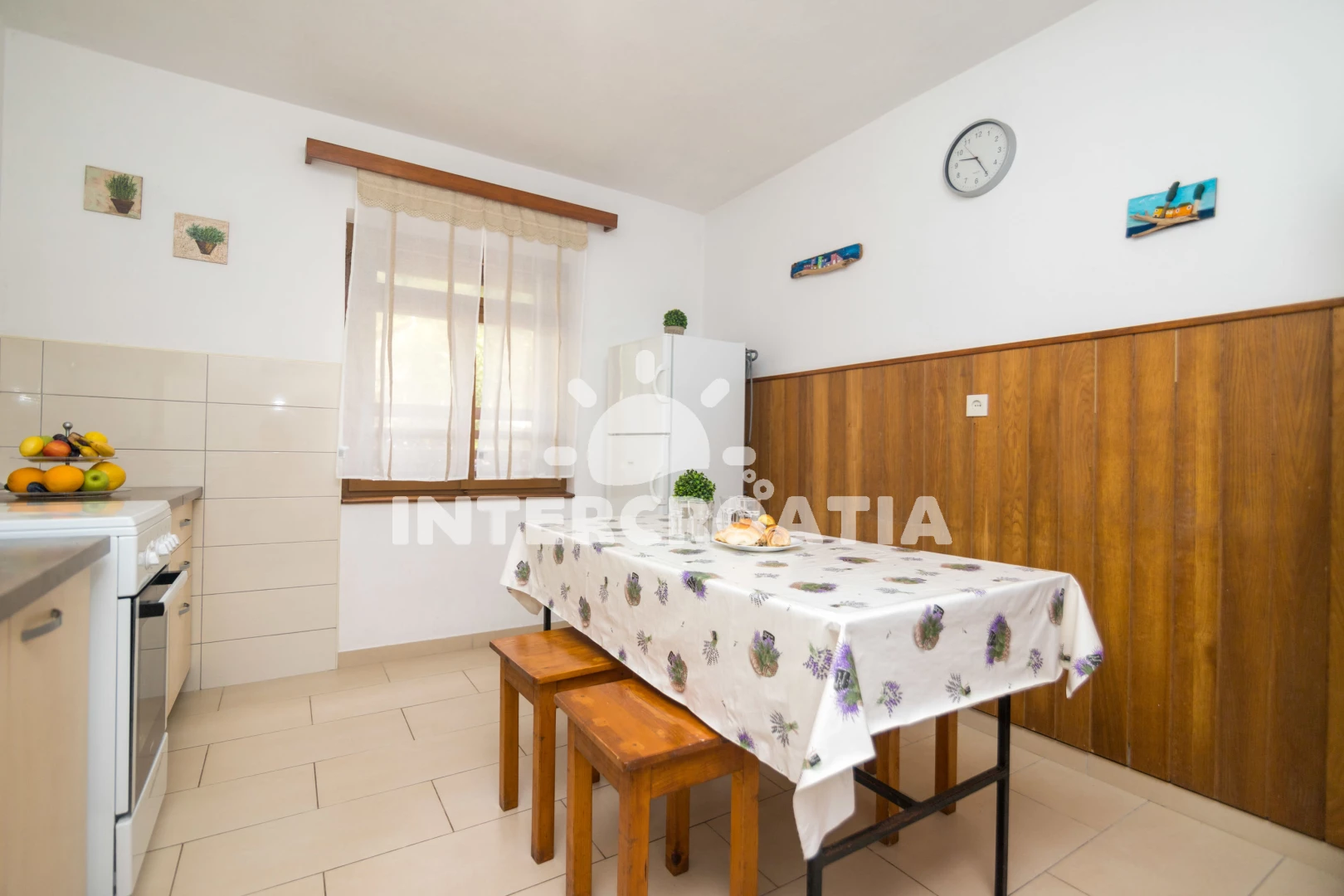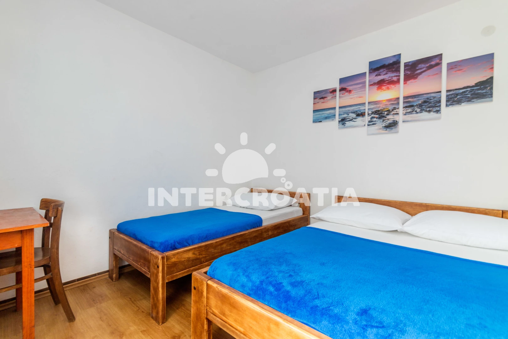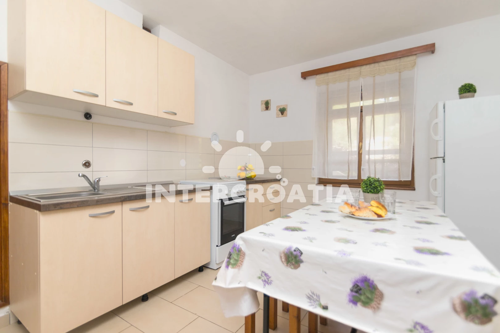 Apartmán se nachází 100 m od moře a pláže. Pláž je skalnatá, oblázková a větší kamení. U objektu je k dispozici společná zahrada s posezením a grilem. Parkování je před domem.
