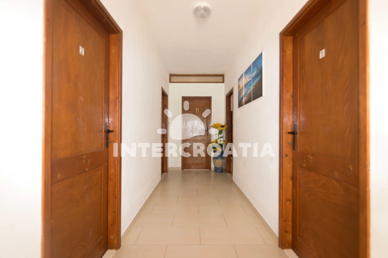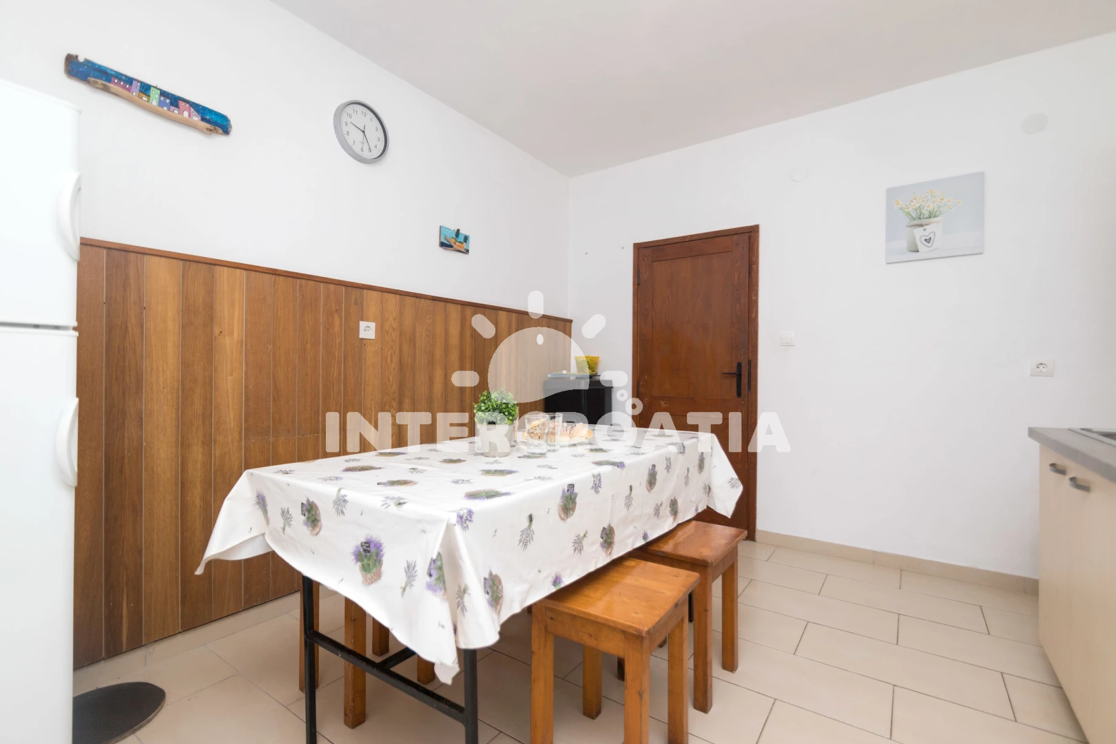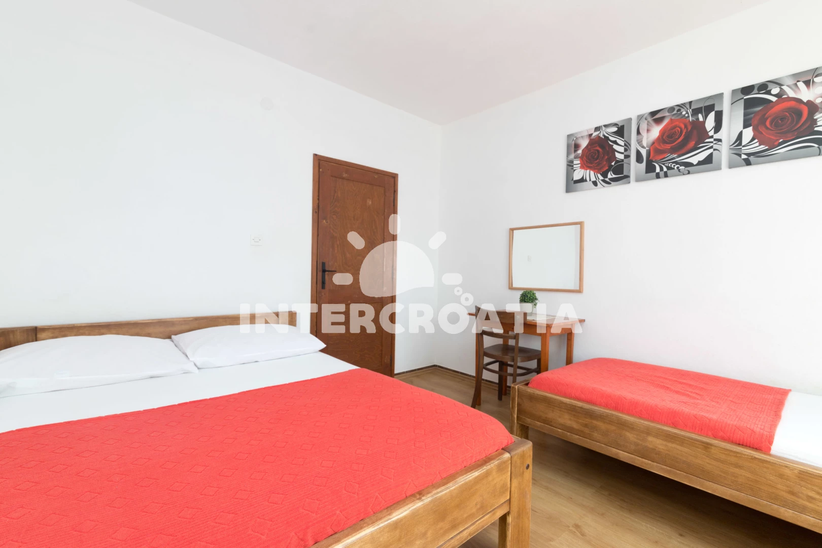 Apartmán se nachází 100 m od moře a pláže. Pláž je skalnatá, oblázková a větší kamení. U objektu je k dispozici společná zahrada s posezením a grilem. Parkování je před domem.
