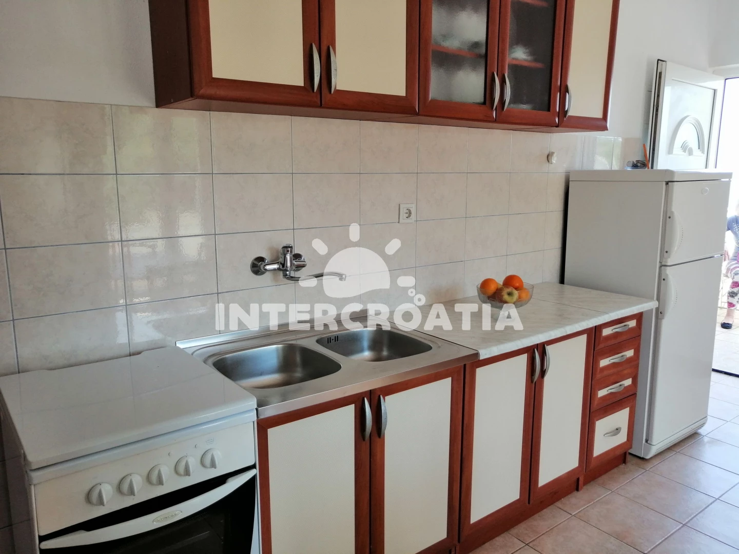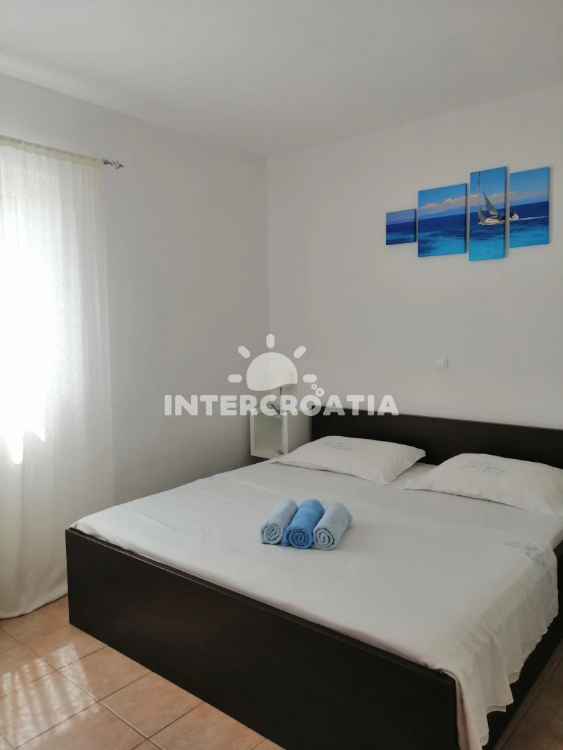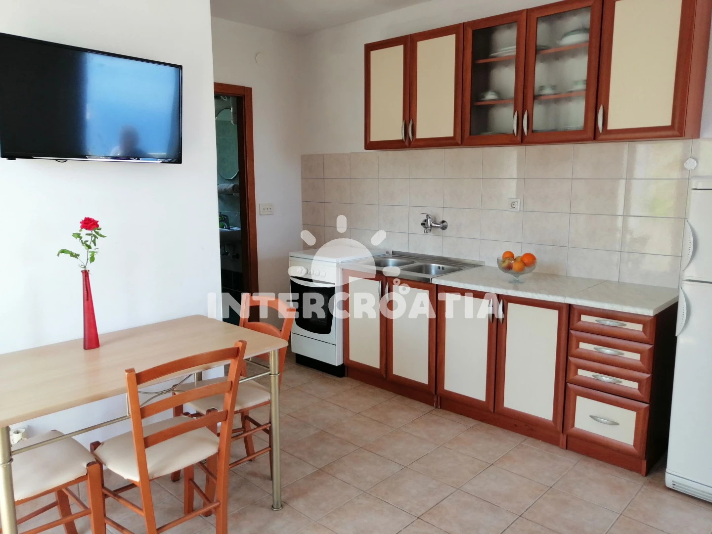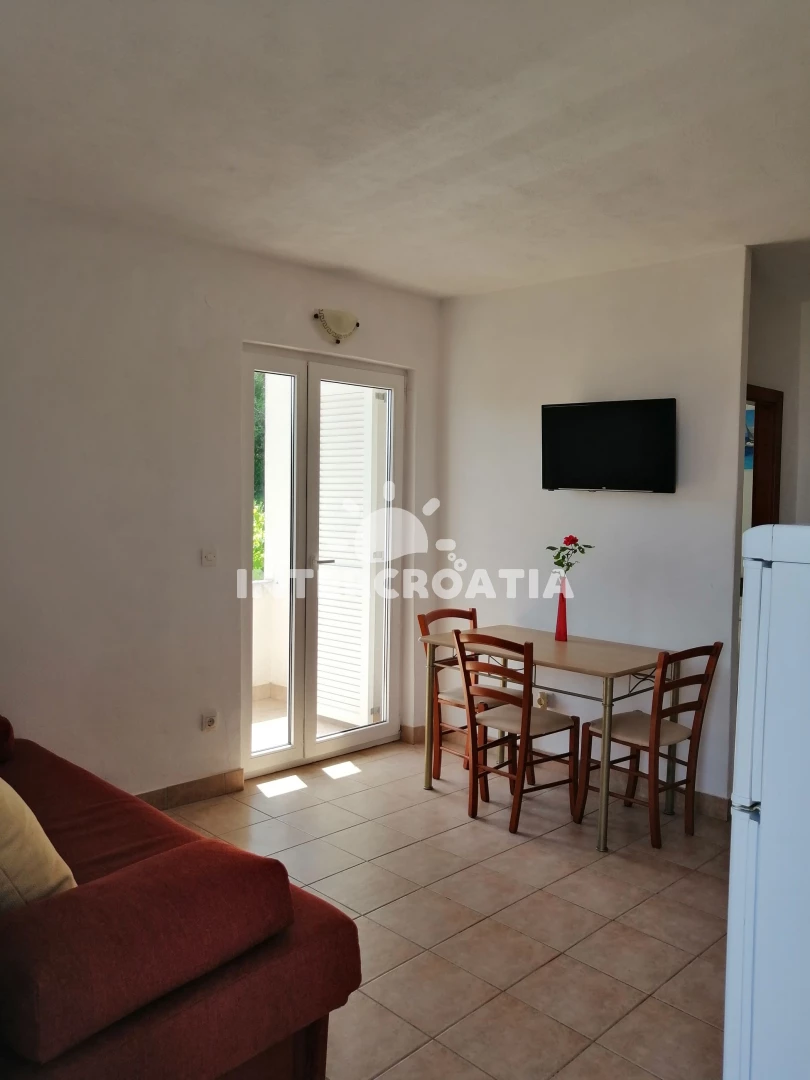 Apartmán se nachází 70 m od moře a pláže. Pláž je skalnatá, oblázková, větší kamení a betonové desky. U objektu je k dispozici společná zahrada s posezením a grilem. Parkování je před domem.