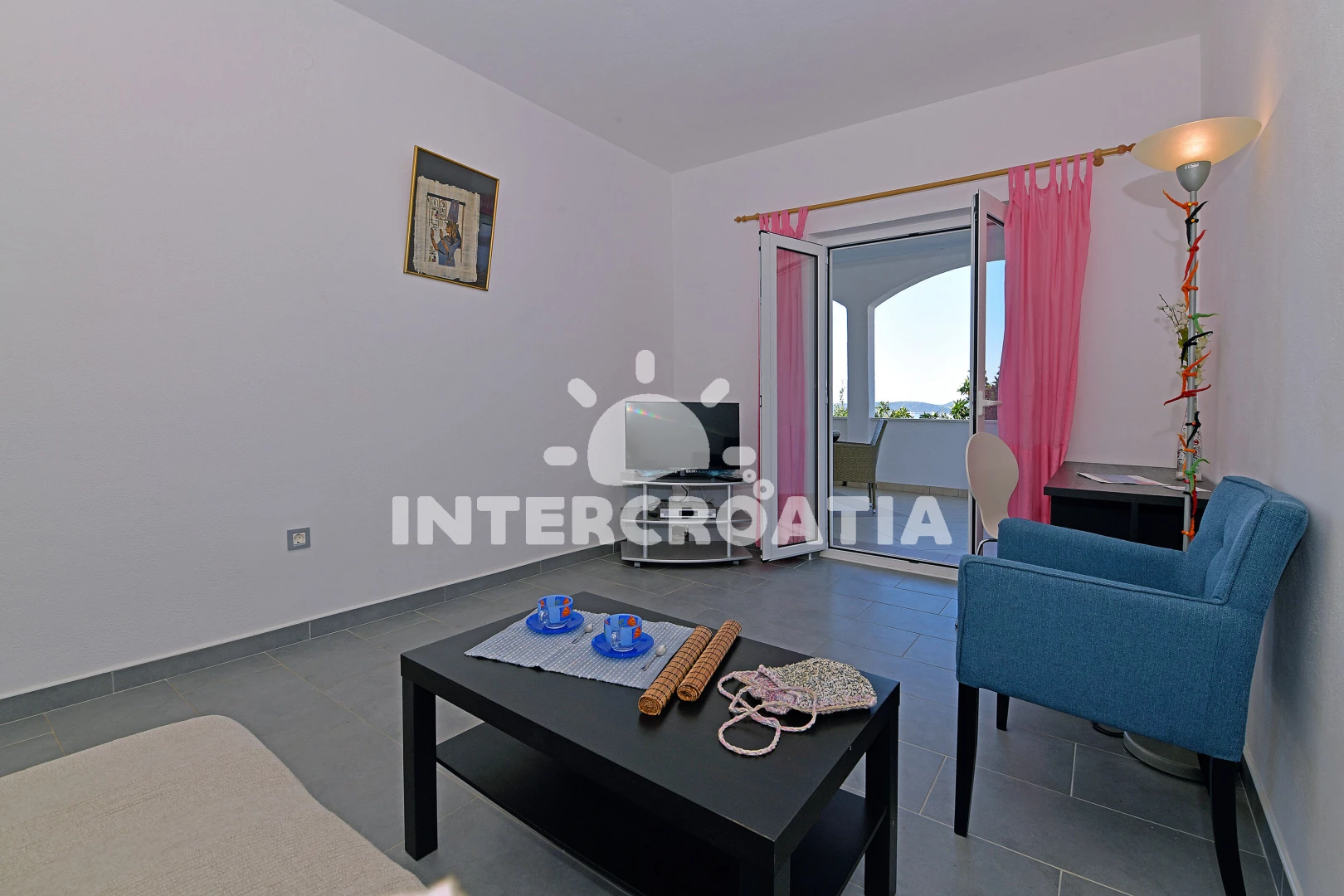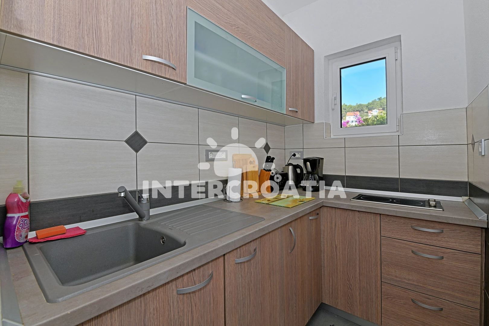 Apartmán se nachází 300 m od moře a pláže. Pláž je skalnatá, oblázková a větší kamení. Parkování je před domem.