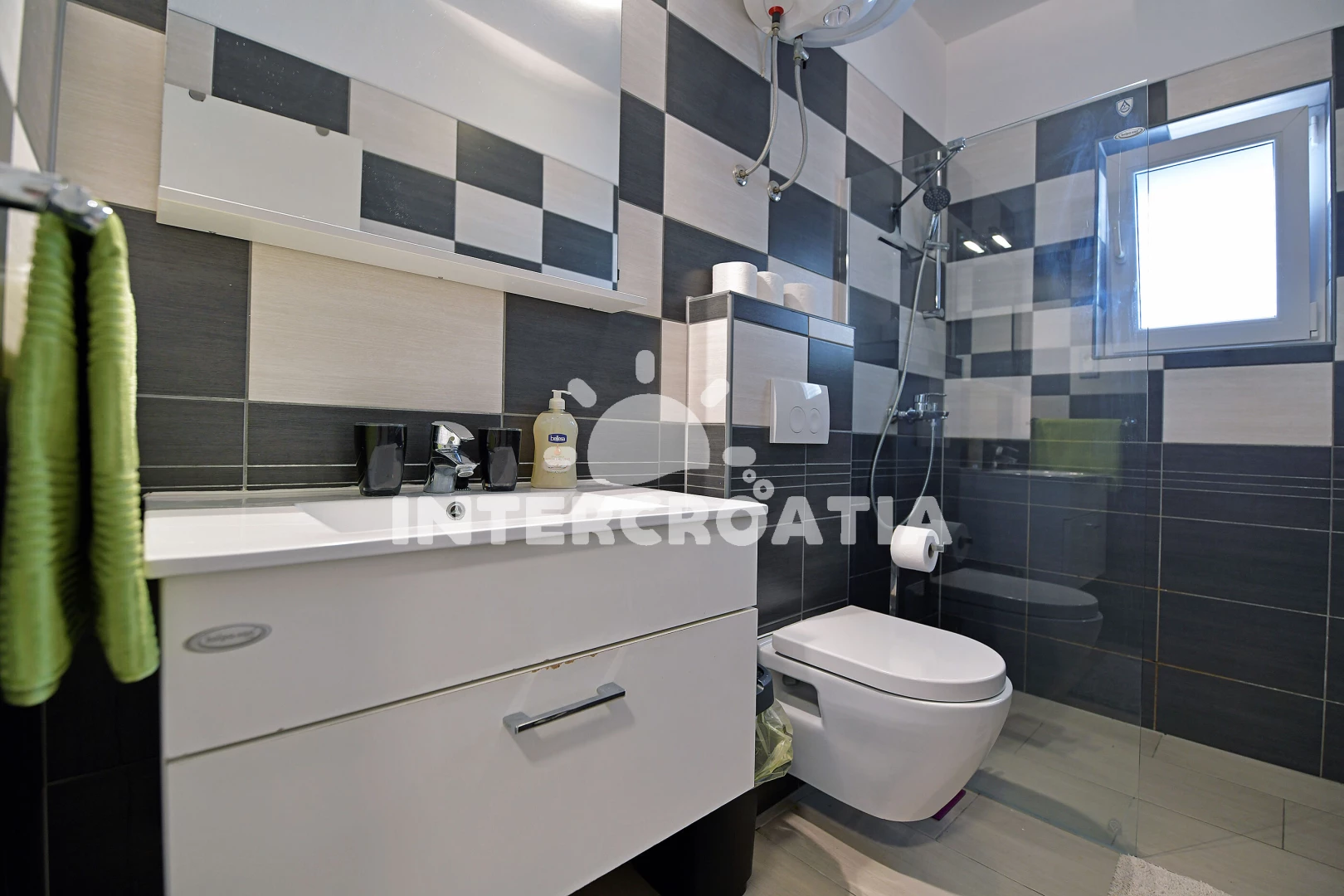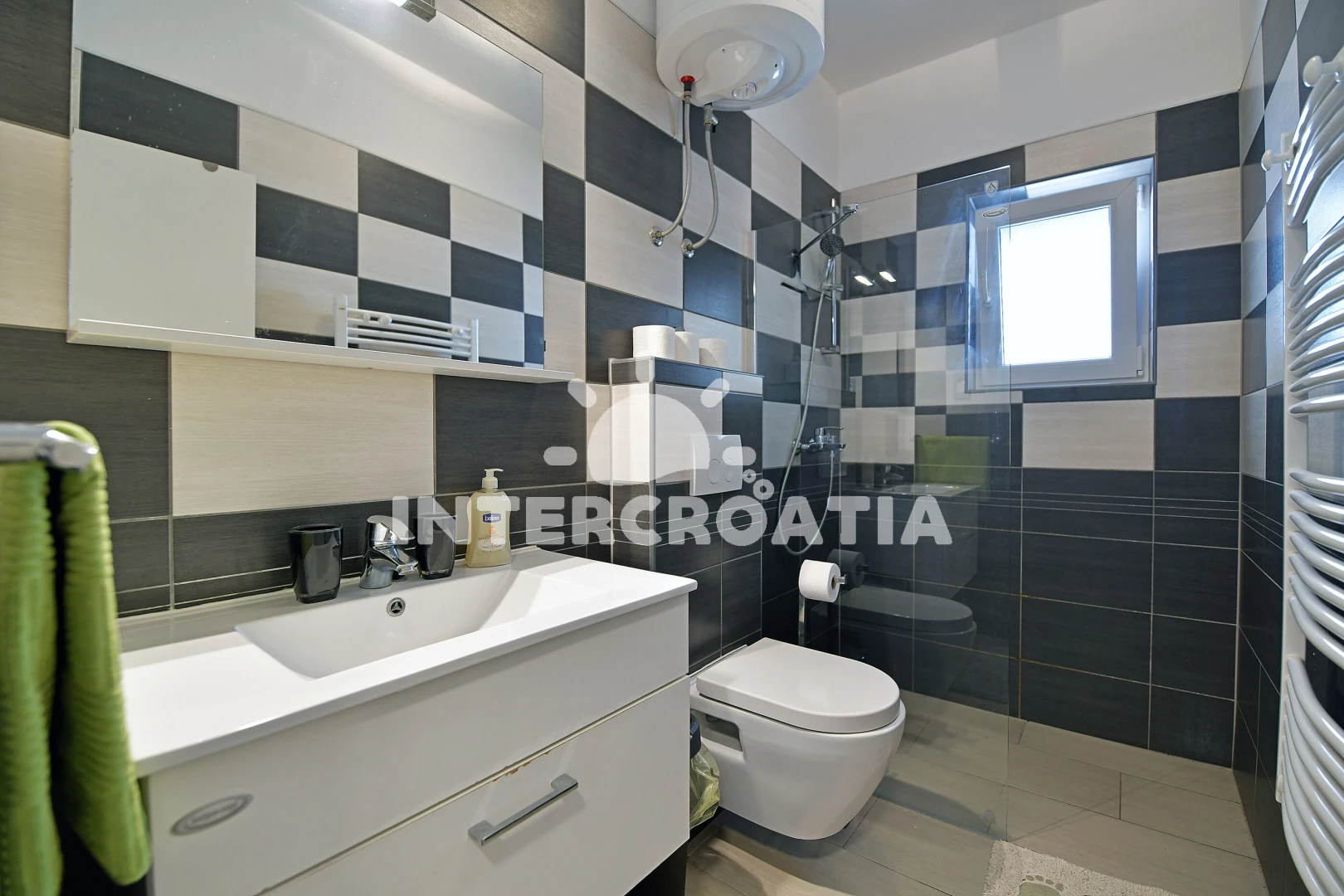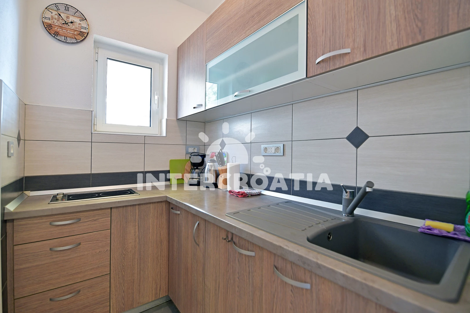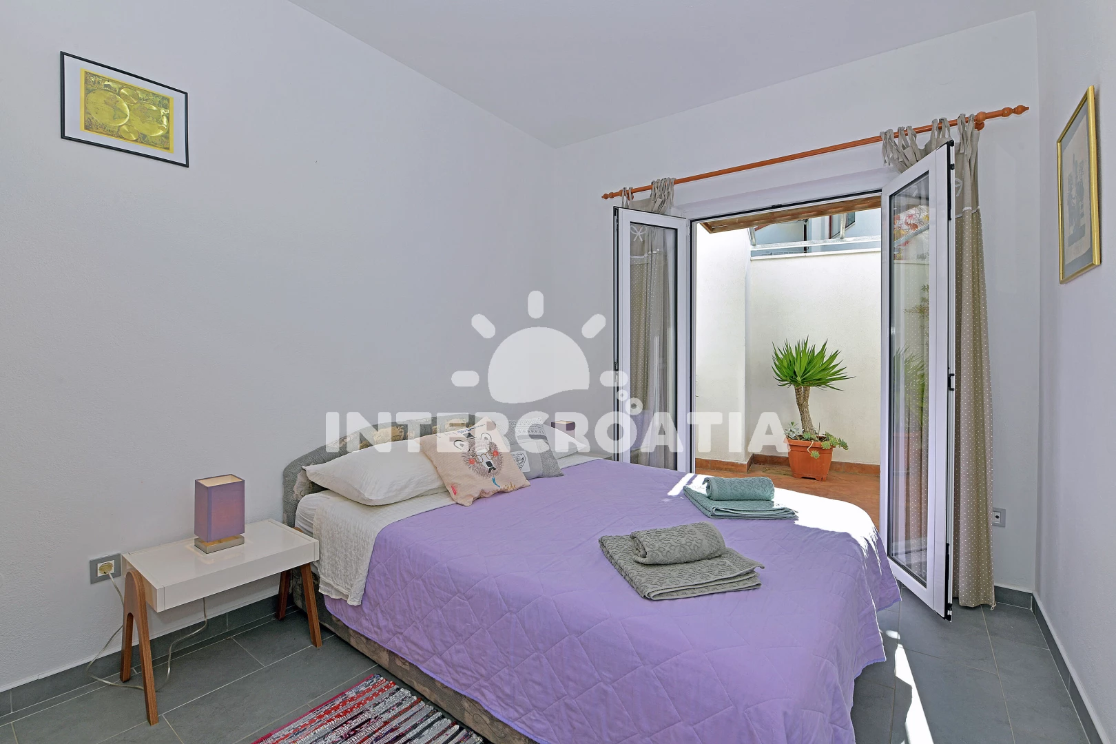 Apartmán se nachází 300 m od moře a pláže. Pláž je skalnatá, oblázková a větší kamení. Parkování je před domem.