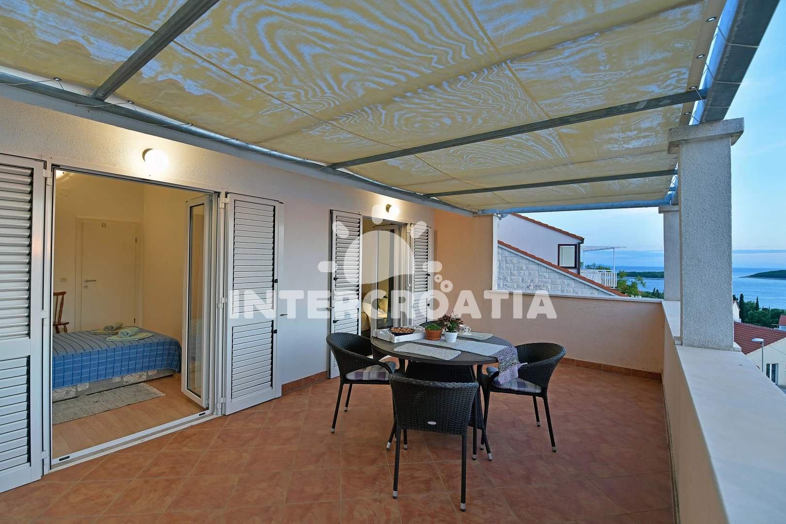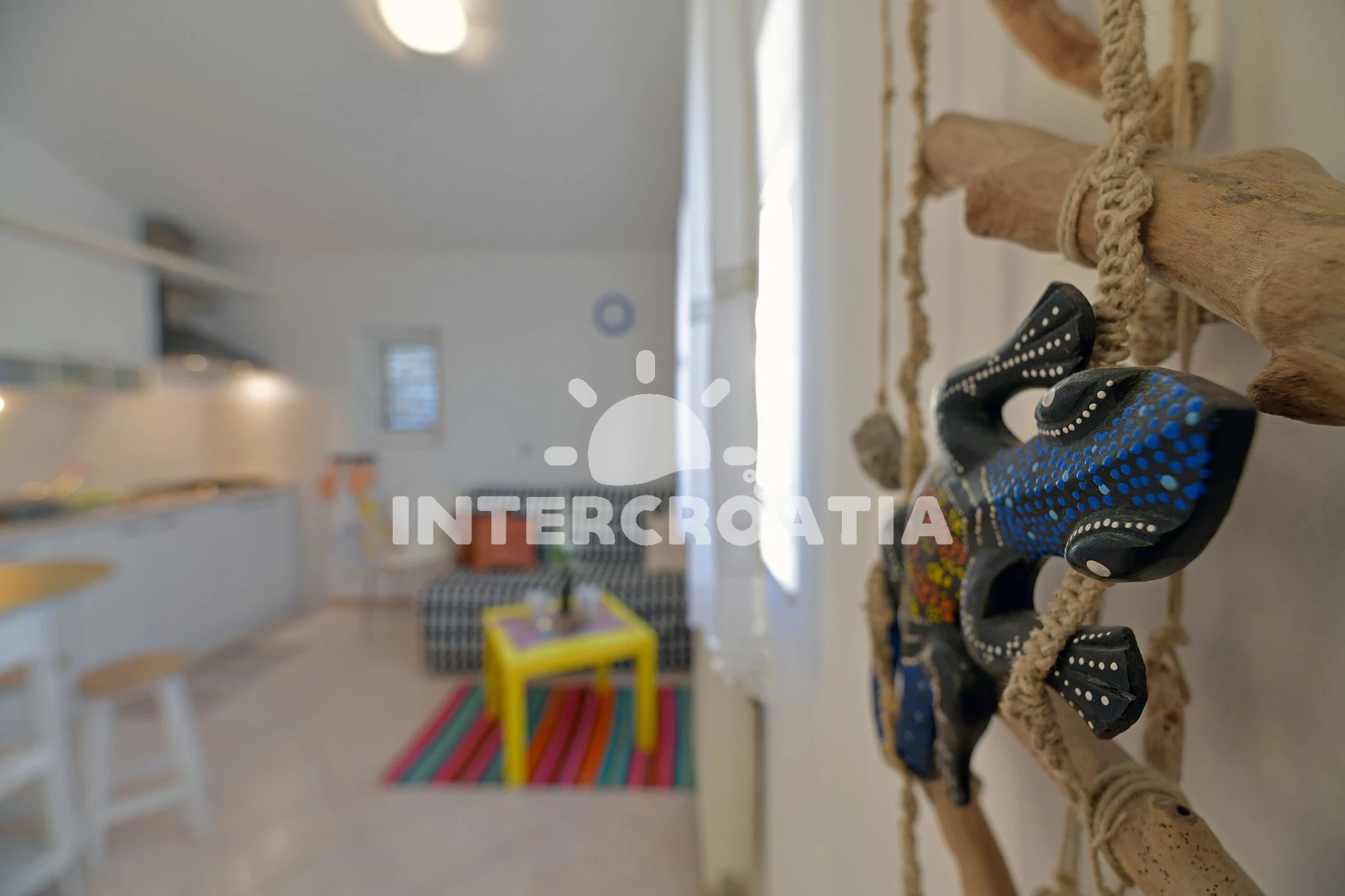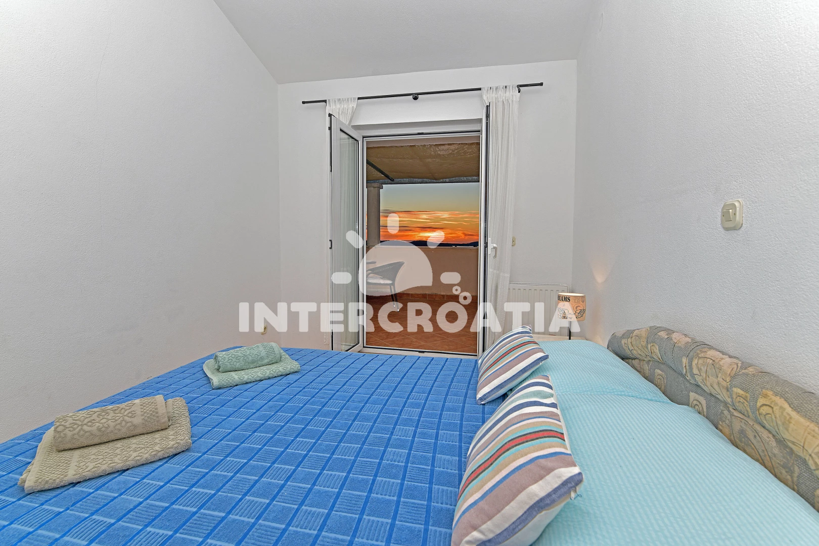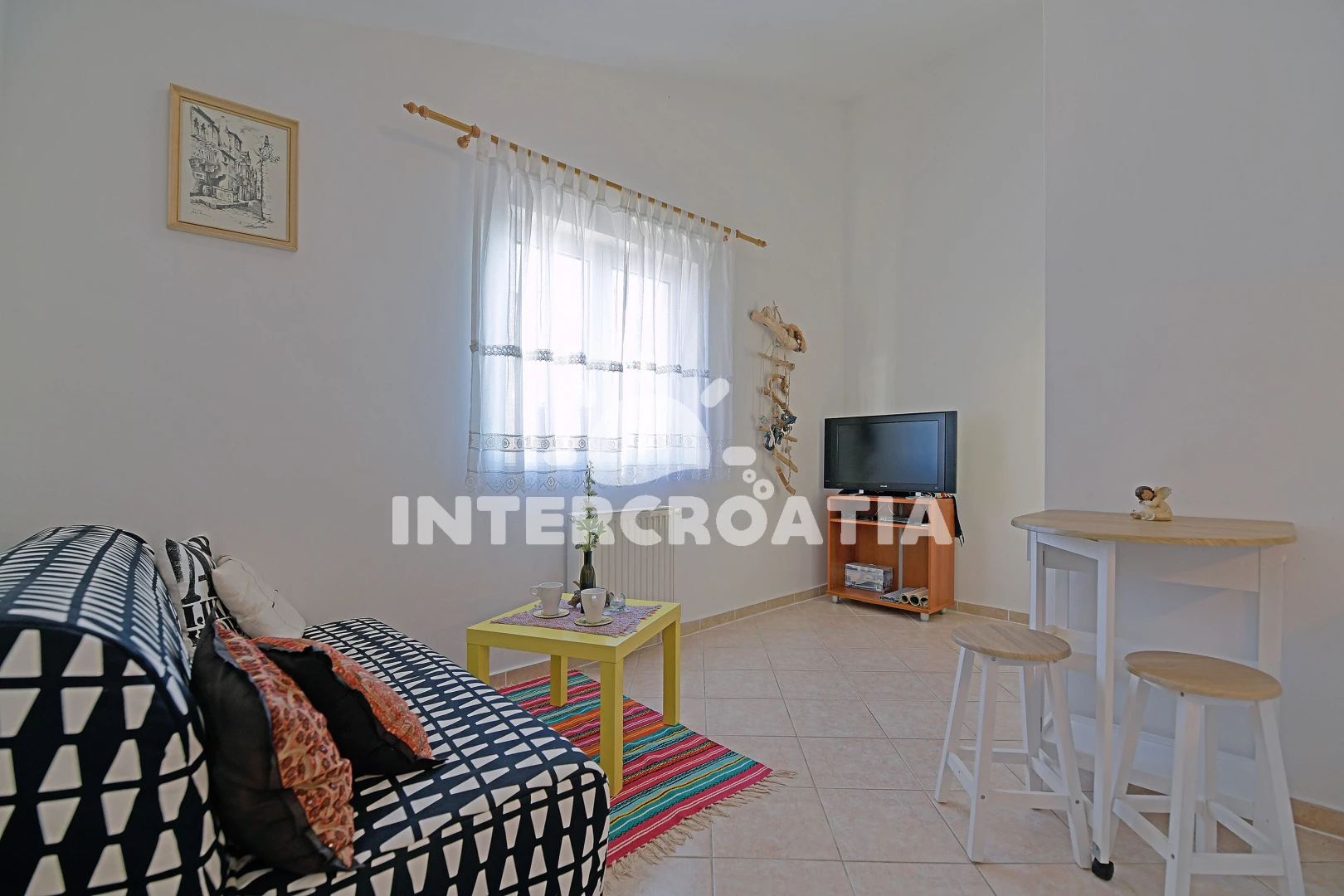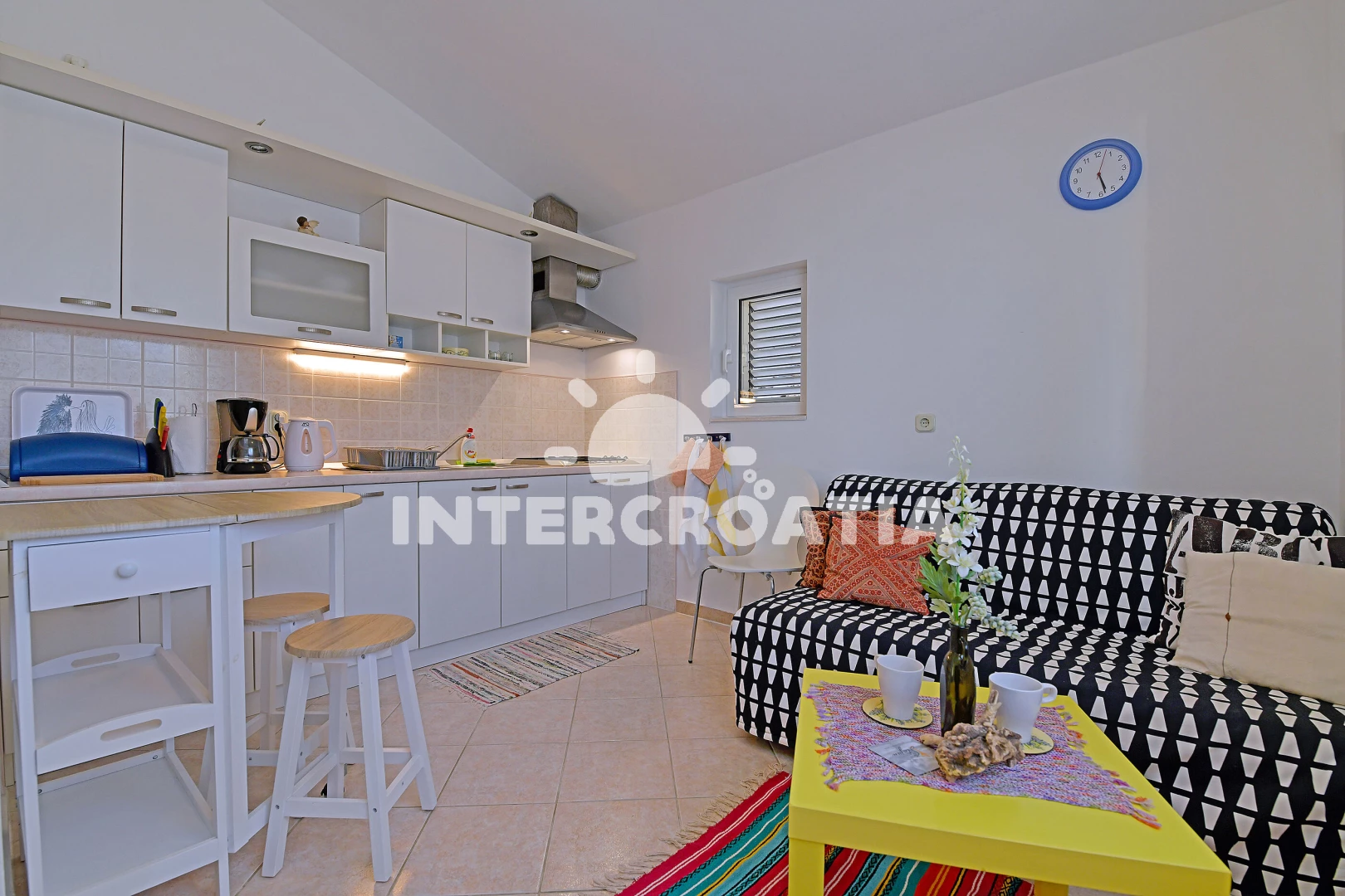 Apartmán se nachází 300 m od moře a pláže. Pláž je skalnatá, oblázková a větší kamení. Parkování je před domem.