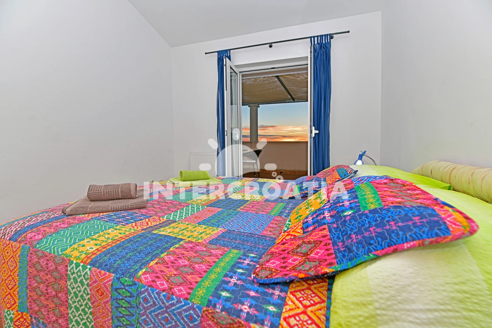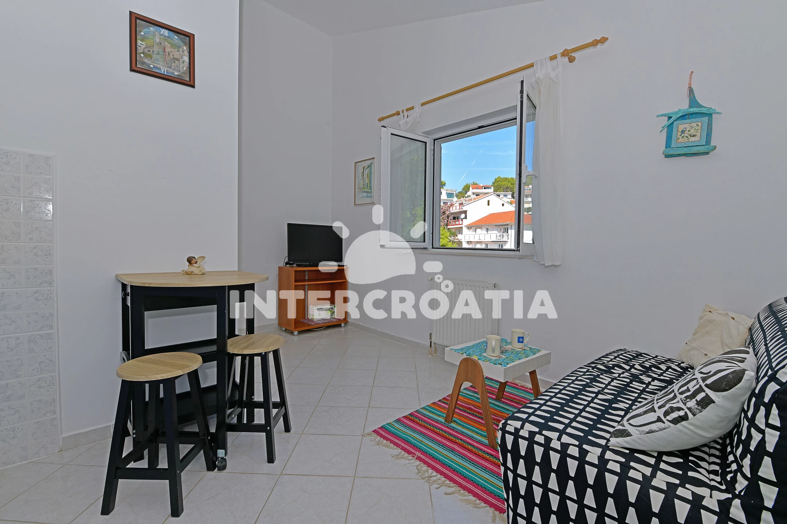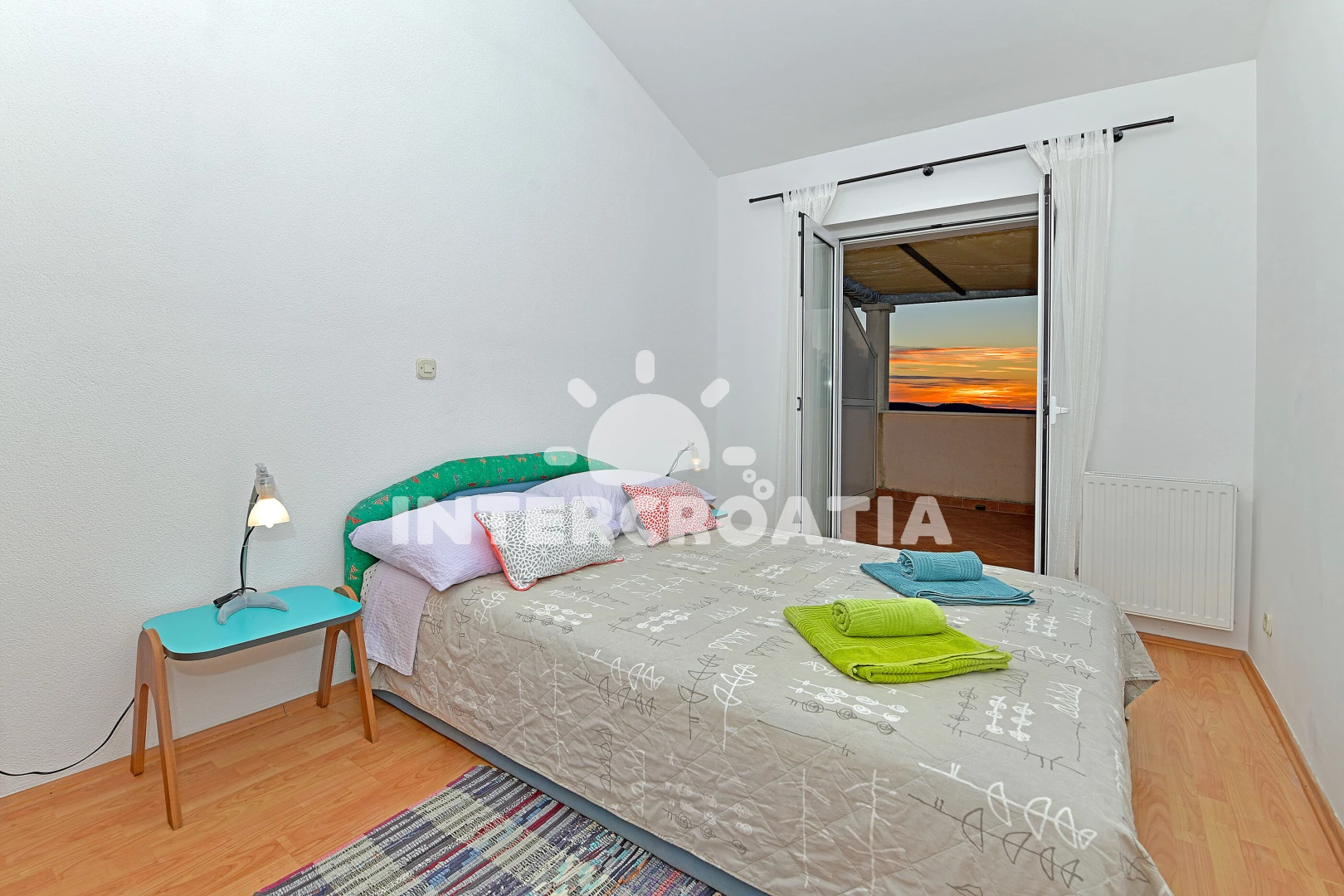 Apartmán se nachází 300 m od moře a pláže. Pláž je skalnatá, oblázková a větší kamení. Parkování je před domem.