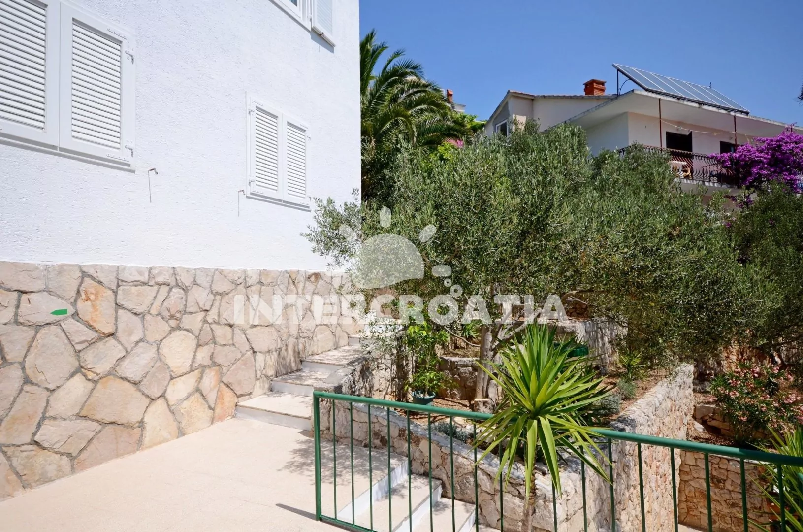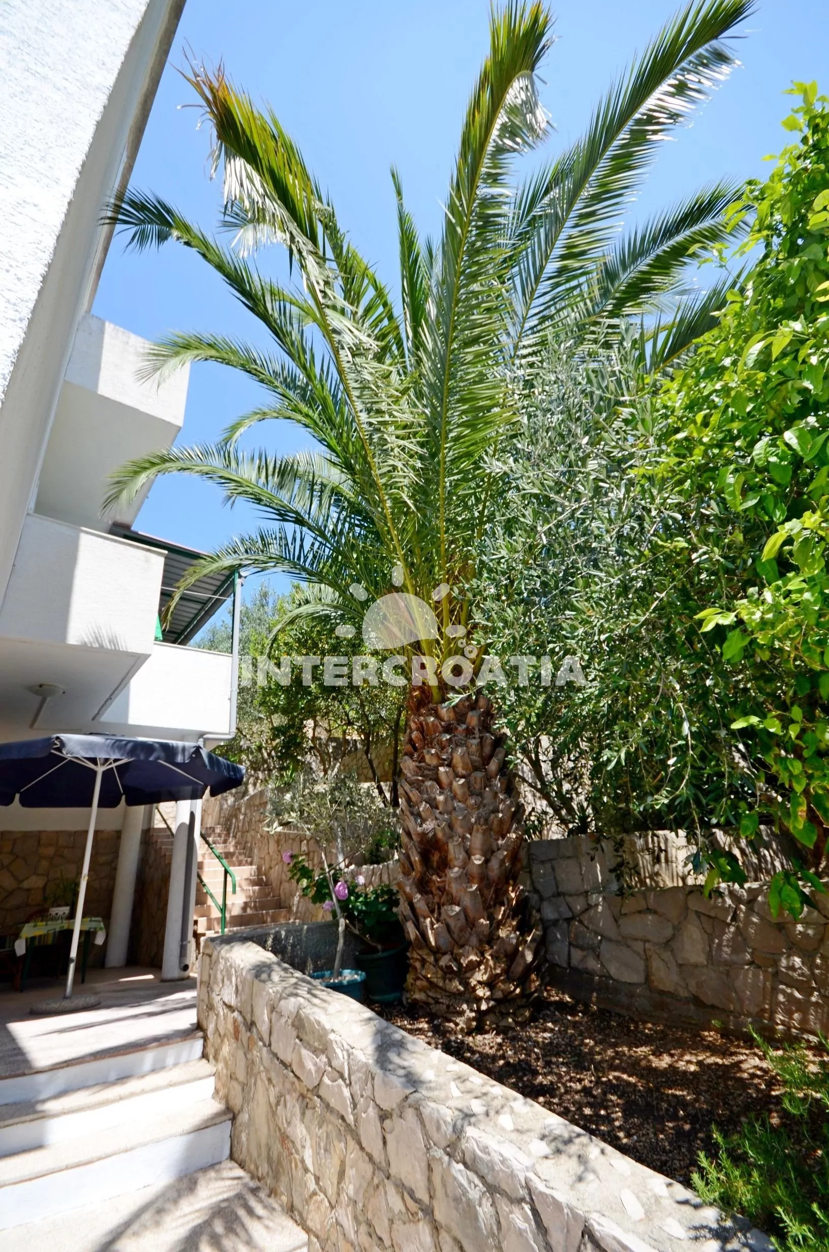 Patrová vilka s výhledem na moře a terasovitou okrasnou zahradou. Apartmány s balkony a terasami.