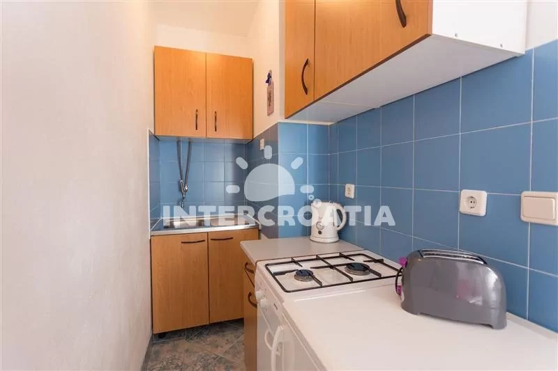 Apartmán s výhledem na moře a balkonem se nachází v druhém patře domu a je vhodný pro 2 až 3 osoby. Obývací pokoj je spojený s kuchyní. Kuchyňská linka je vybavena dvouplotýnkovým sporákem, nádobím a lednicí s mrazákem. Obývací pokoj s jídelním stolem, pohovkou (rozložitelná na extra lůžko pro 1 osobu), televizí se satelitním programem, klimatizací a vstupem na balkon. Ložnice s jedním dvoulůžkem a vstupem na balkon. Koupelna se sprchovým koutem, umyvadlem, fénem a wc. Hostům je k dispozici parkování u objektu zdarma.