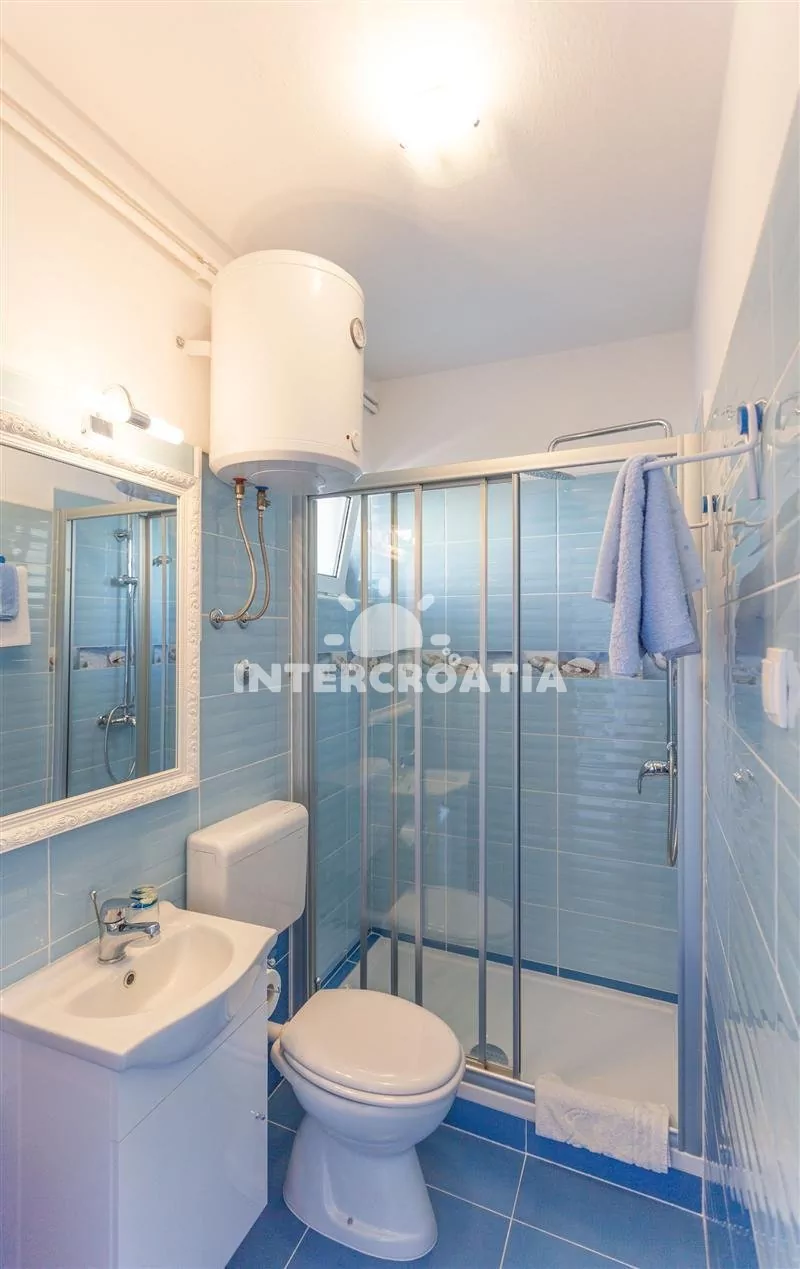 Vzdálenosti: Moře a pláž 450 m, centrum 400 m, veřejná doprava, lékárna, ambulance, potápění, bar, směnárna, banka, pošta 500 m, restaurace, muzeum, půjčovna motorových člunů a kol 300 m, supermarket 150 m, diskotéka 700 m, čerpací stanice, venkovní bazén 1 km, tenis 2 km, trajekt 20 km.