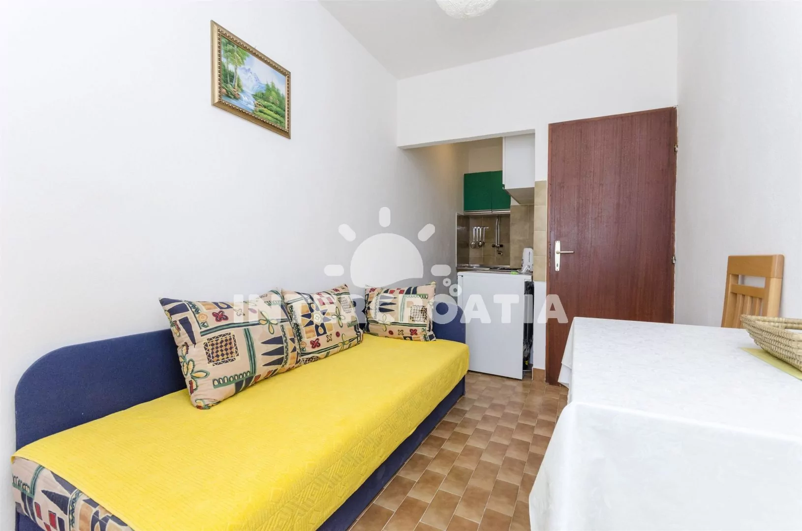 Apartmán s výhledem na moře a balkonem se nachází v prvním patře domu a je vhodný pro 2 až 3 osoby. Obývací pokoj je spojený s kuchyní. Kuchyňská linka je vybavena dvouplotýnkovým sporákem, nádobím a…