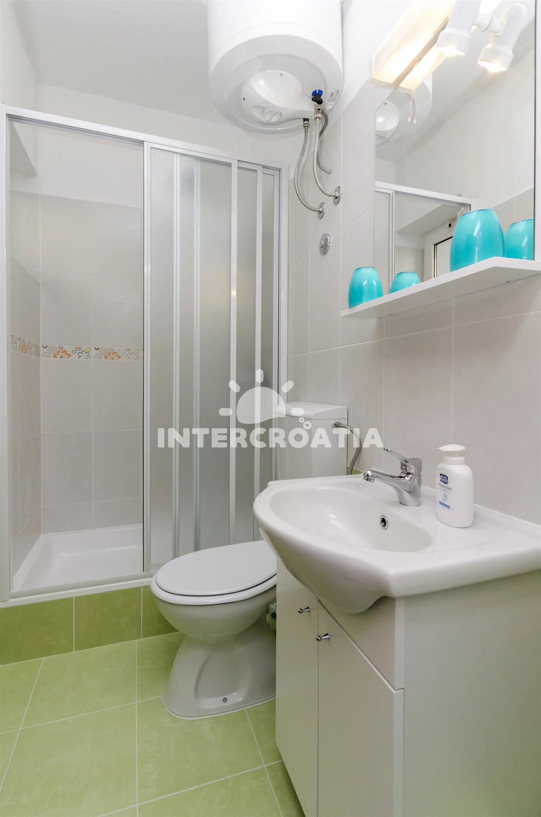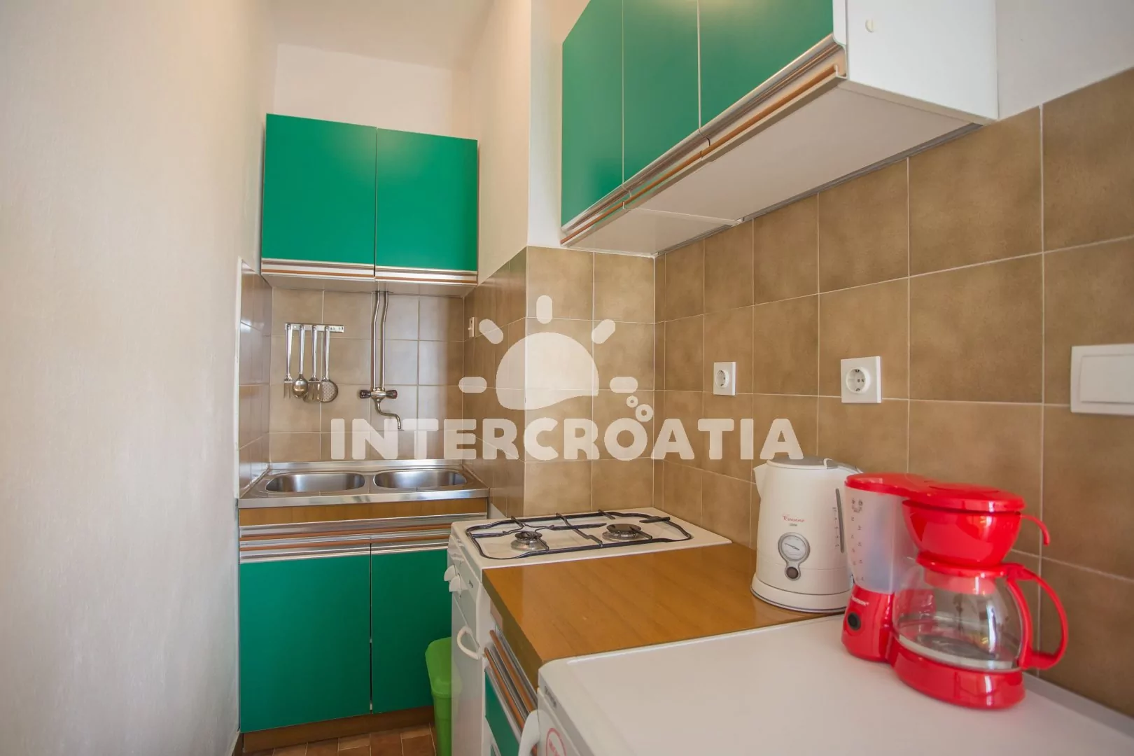 Vzdálenosti: Moře a pláž 450 m, centrum 400 m, veřejná doprava, lékárna, ambulance, potápění, bar, směnárna, banka, pošta 500 m, restaurace, muzeum, půjčovna motorových člunů a kol 300 m, supermarket 150 m, diskotéka 700 m, čerpací stanice, venkovní bazén 1 km, tenis 2 km, trajekt 20 km.