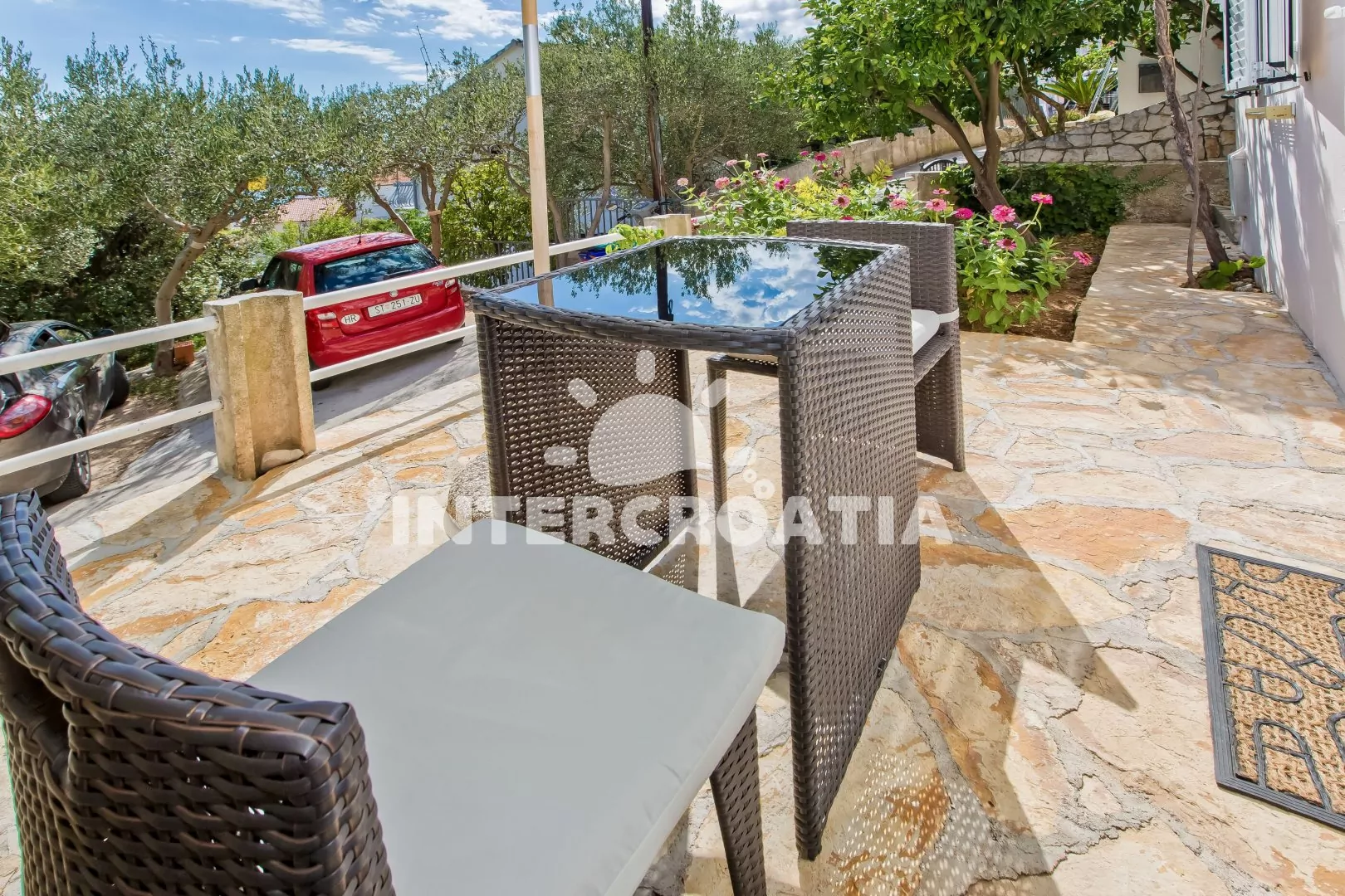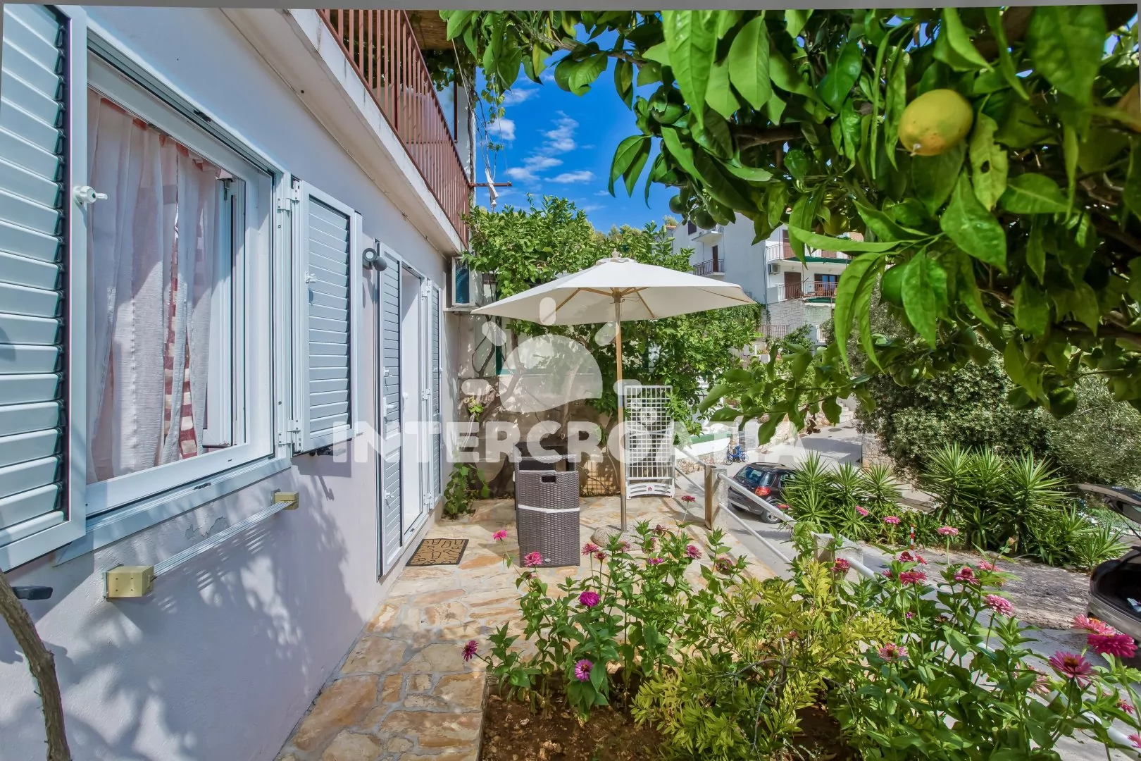 Apartmánový dům ve vyhledávané lokalitě s dobrou dostupností k plážím Majerovica a Podstine. Apartmány s lodžiemi a venkovním posezením. parkovací místa u domu.