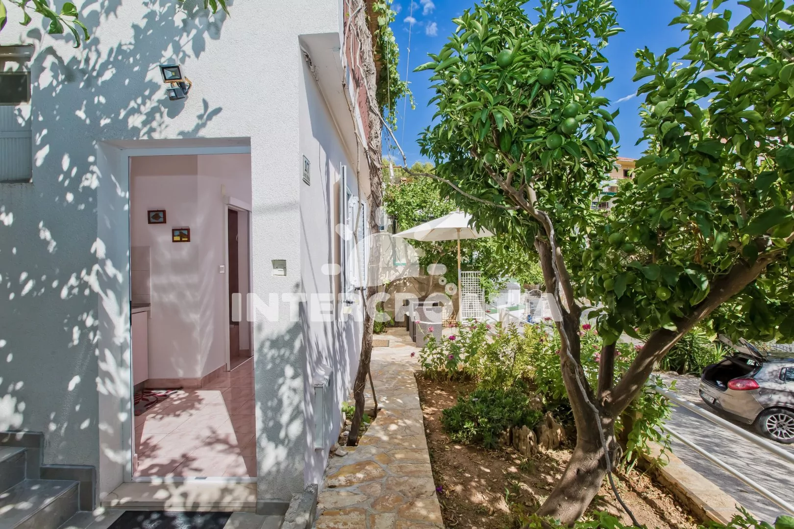 Vzdálenosti: Moře a pláž 350 m, centrum, veřejná doprava, restaurace, bar, muzeum, pošta, banka, směnárna, lékárna 1 km, supermarket 100 m, ambulance 300 m, tenis, půjčovna kol 500 m, diskotéka 700 m, potápění, půjčovna motorových člunů 1,2 km, čerpací stanice 1,5 km, trajekt 15 km.