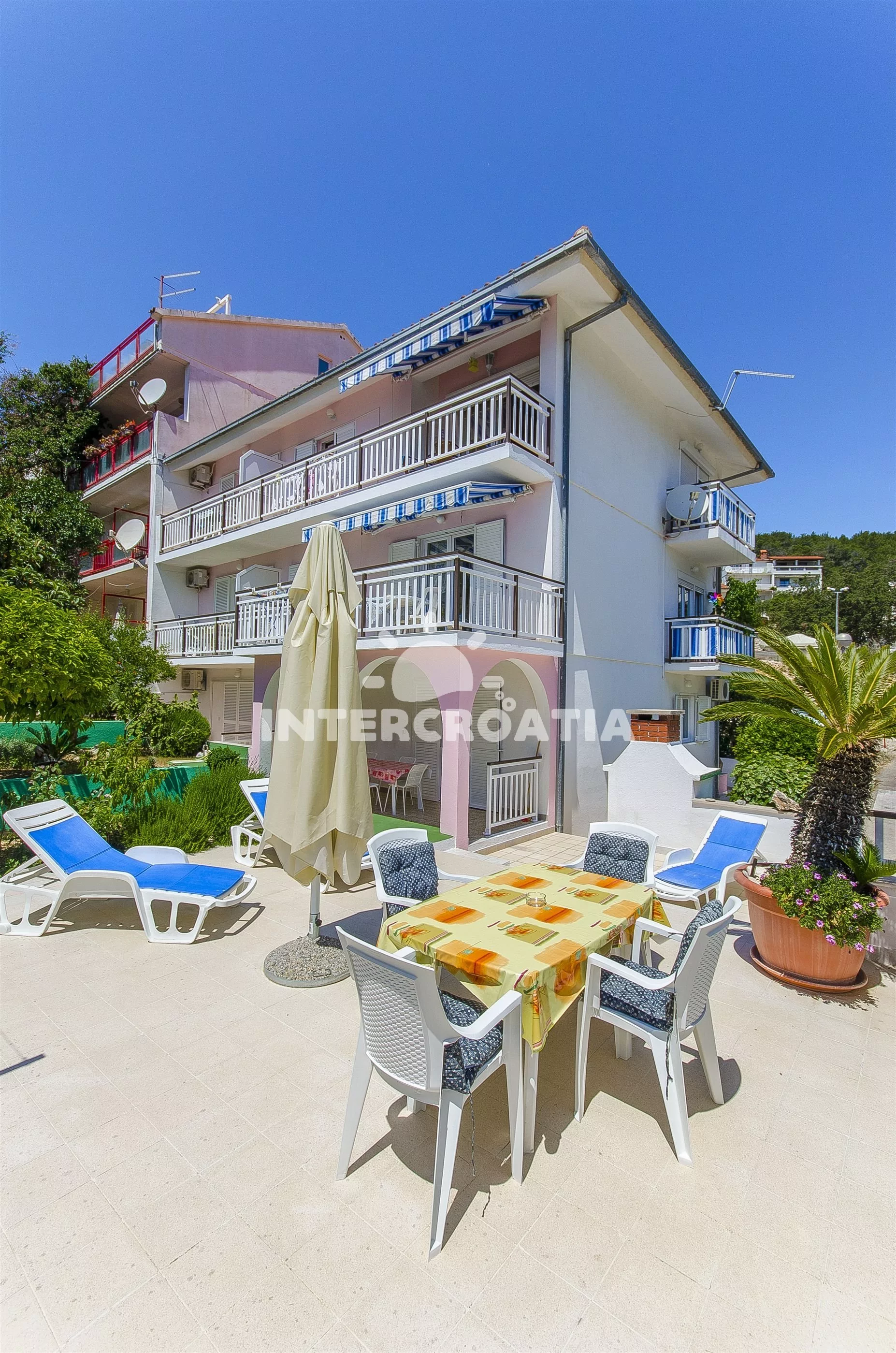 Prostorný dům se třemi apartmány se nachází v docházkové vzdálenosti od moře. Dům nabízí ubytování v klimatizovaných apartmánech s lodžiemi a posezením. K dispozici společná terasa s grilem a venkovním posezením. Parkovací místa u objektu.
