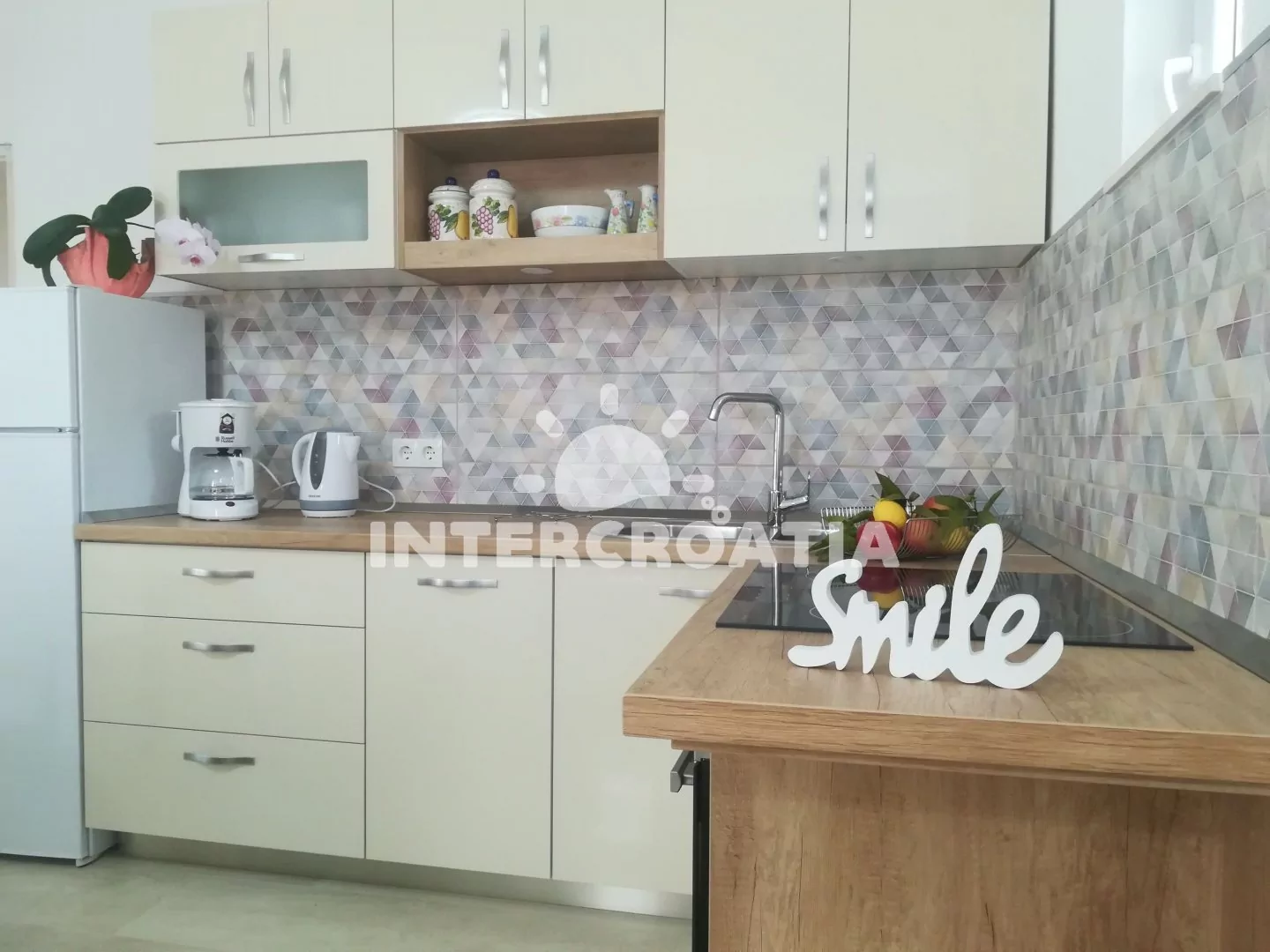 Apartmán (110 m2) se třemi ložnicemi, velkou terasou (50 m2) a venkovním posezením se nachází v přízemí domu. Apartmán je vhodný pro 6 osob. Obývací pokoj je spojený s kuchyní. Kuchyňská linka je…