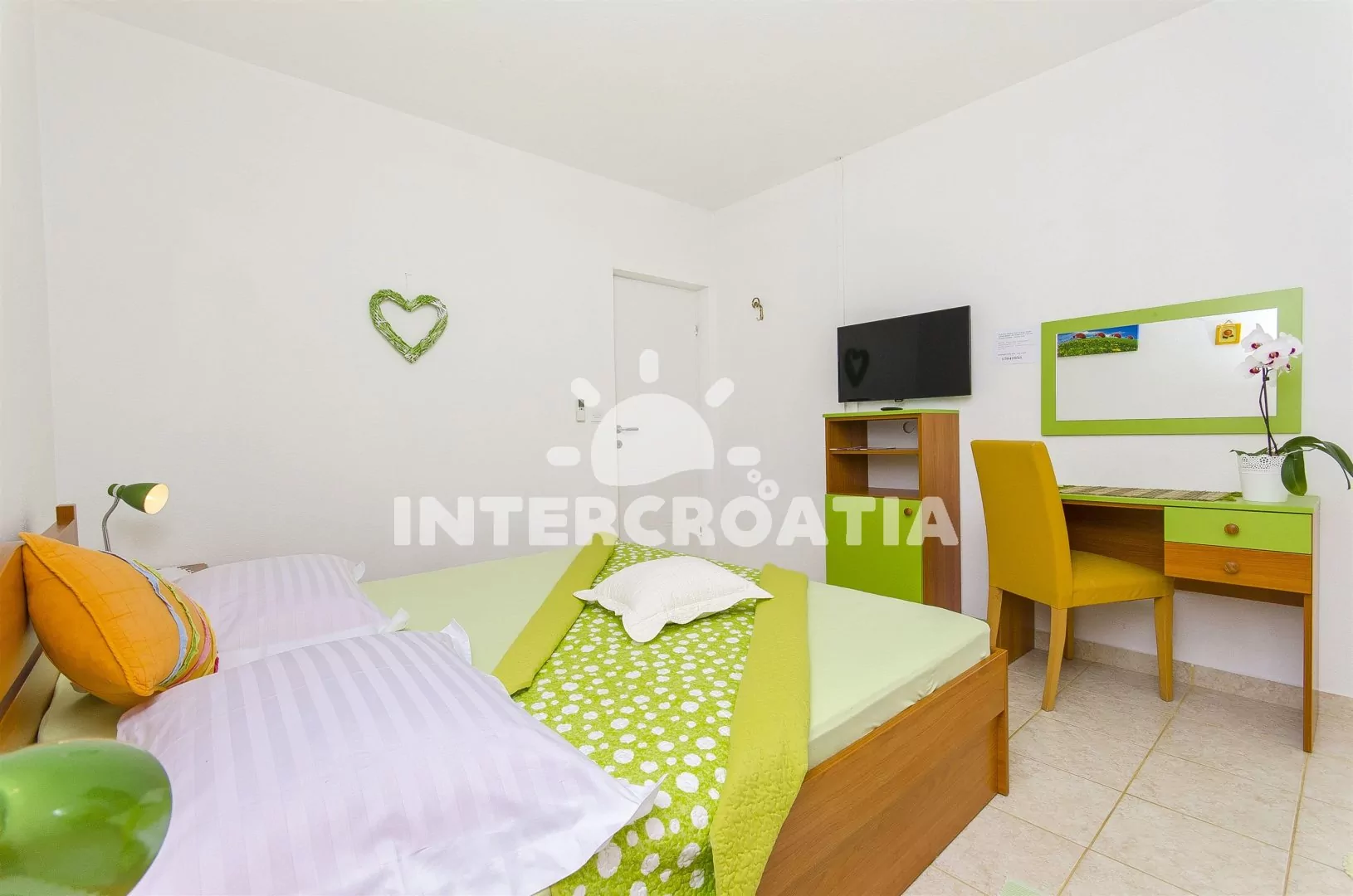 Prostorný dům se třemi apartmány se nachází v docházkové vzdálenosti od moře. Dům nabízí ubytování v klimatizovaných apartmánech s lodžiemi a posezením. K dispozici společná terasa s grilem a venkovním posezením. Parkovací místa u objektu.
