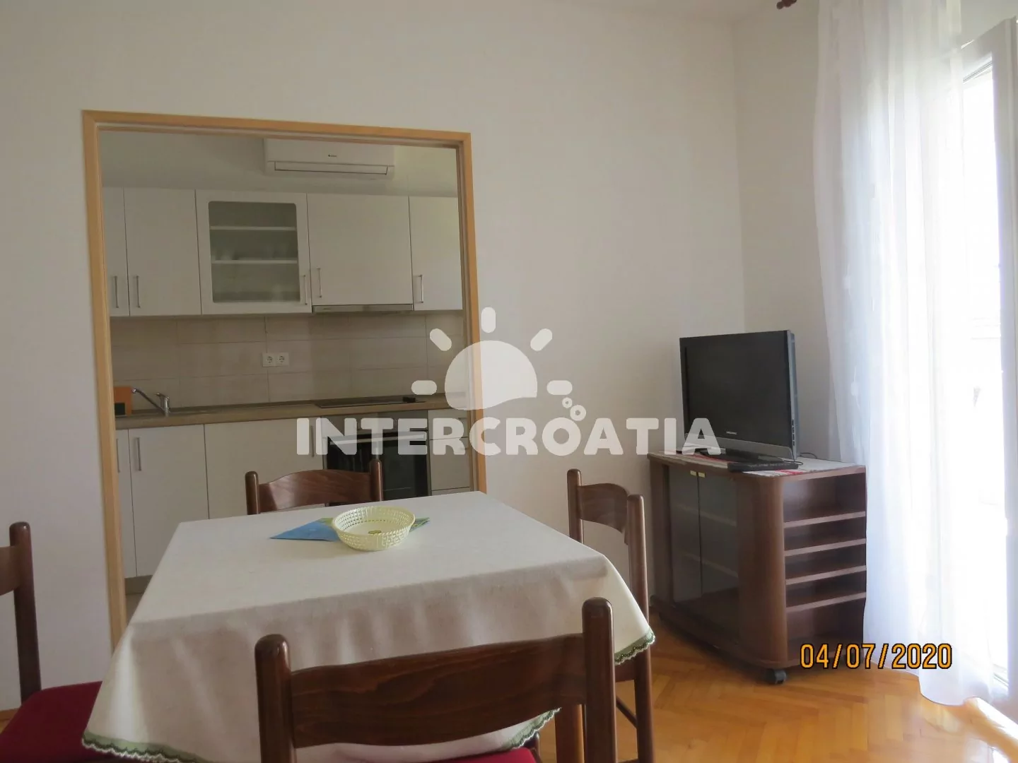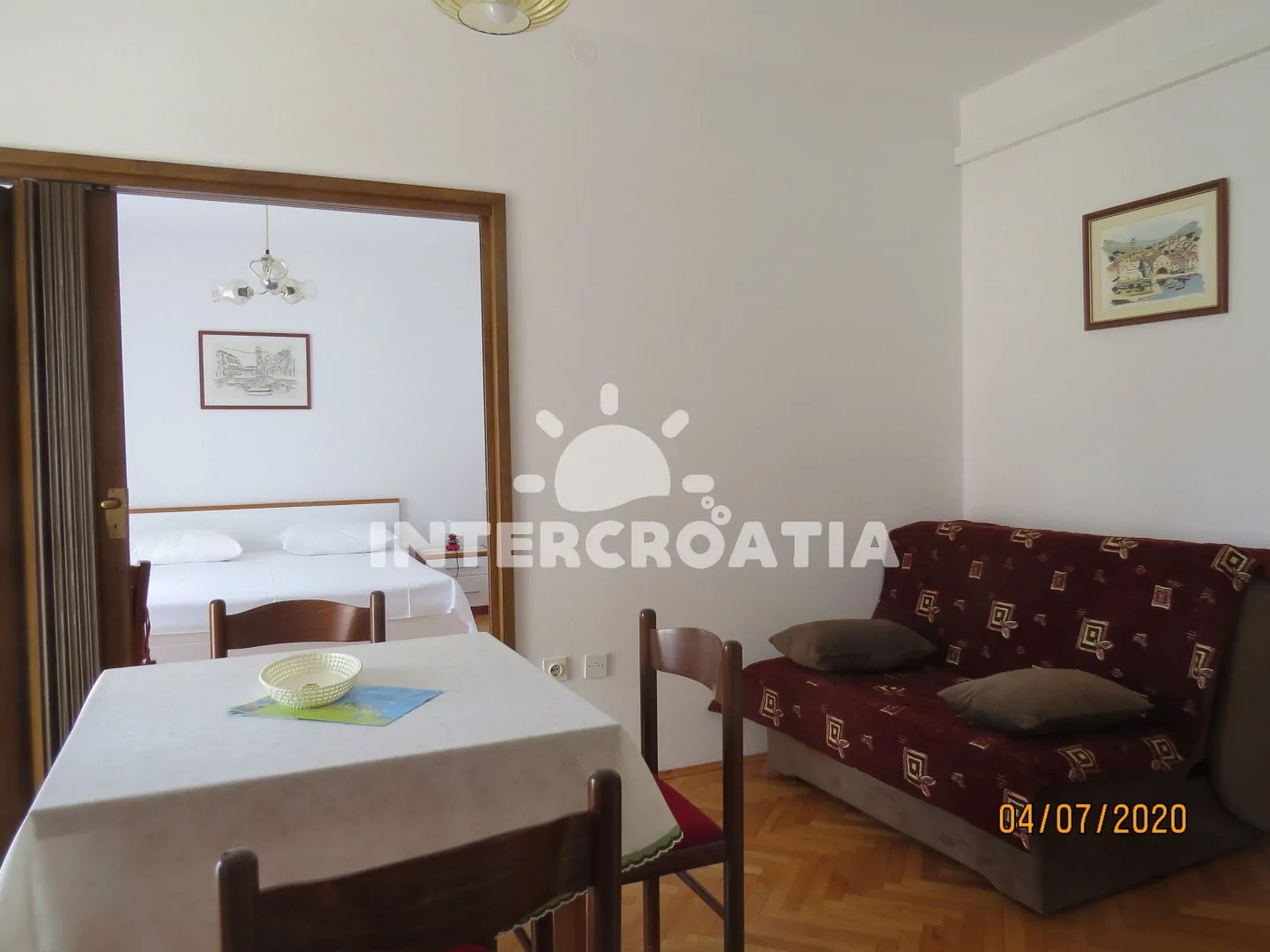 Apartmán (36 m2) s terasou a venkovním posezením se nachází v 1. patře domu. Apartmán je vhodný pro 2 až 3 osoby. Obývací pokoj je spojený s kuchyní. Kuchyňská linka je vybavena varnou deskou, digestoří, vestavěnou troubou, nádobím a lednicí s mrazákem. Obývací pokoj s jídelním stolem, pohovkou (rozložitelná na extra lůžko pro 1 osobu), televizí se satelitním programem, klimatizací a vstupem na terasu. Ložnice s jedním dvoulůžkem. Koupelna s vanou, sprchovou zástěnou, umyvadlem a wc. Pračka, žehlička a fén na požádání u pronajímatele.