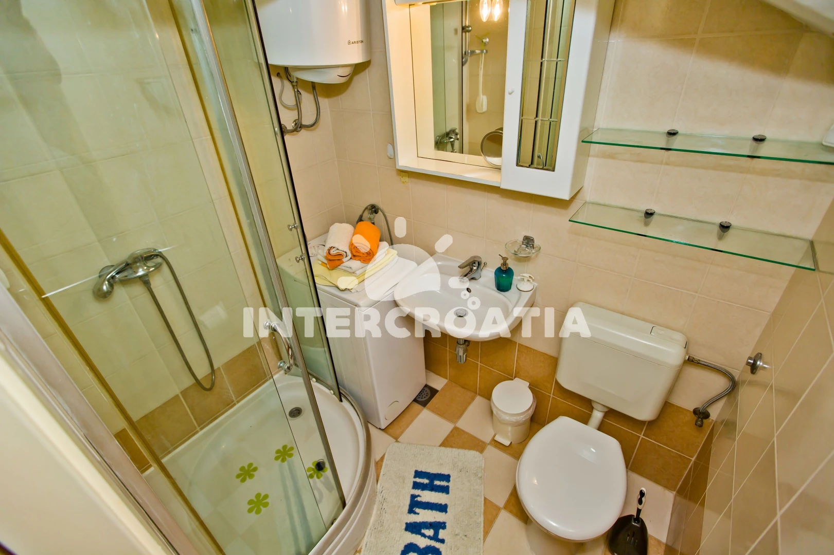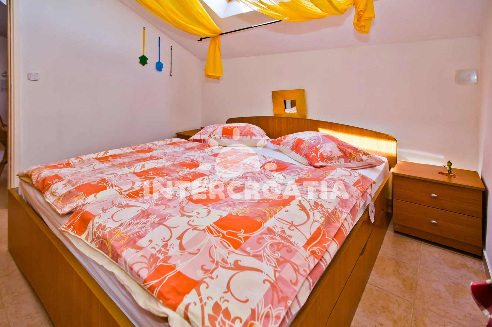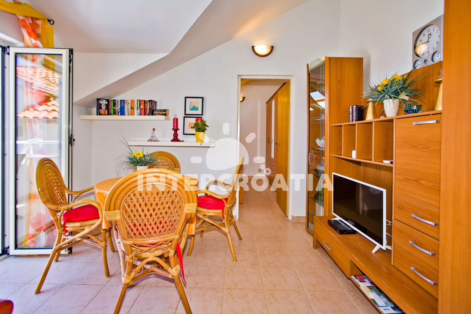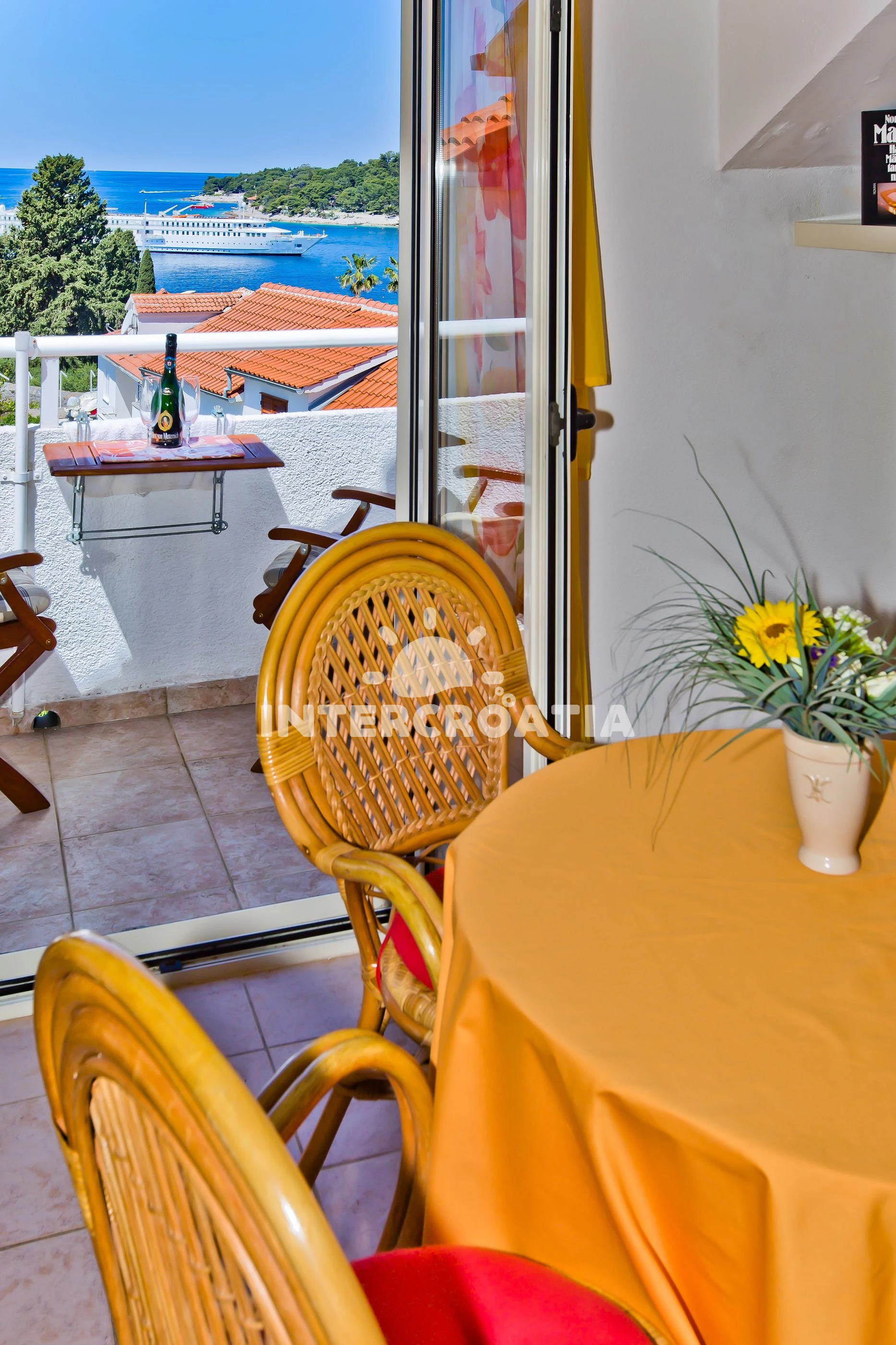 Apartmán (35 m2) s balkonem, a výhledem na moře. Nachází se v podkroví objektu. Apartmán má 1 ložnici a je vhodný pro až 2 osoby. Kuchyňská linka je vybavena varnou deskou, kávovarem, mikrovlnnou…
