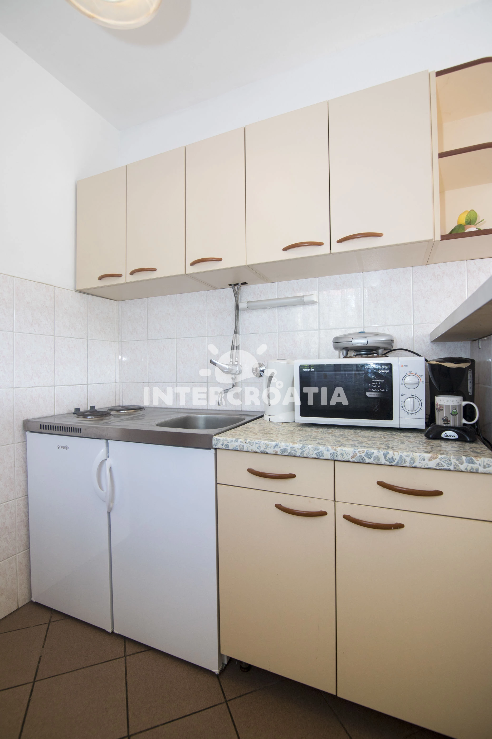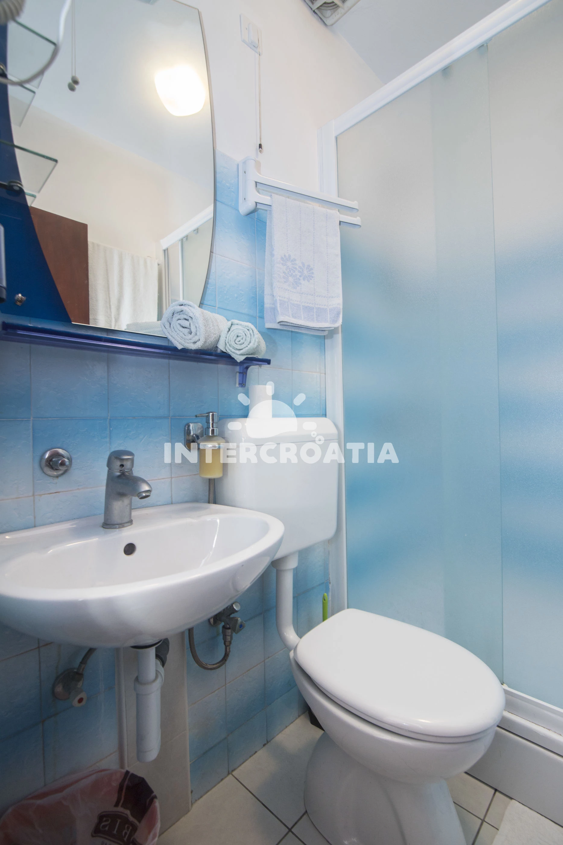 Apartmán se nachází 400 m od moře a pláže. Pláž je skalnatá, oblázková, větší kamení a betonové desky. U objektu je k dispozici společná zahrada s posezením a grilem. Parkování je před domem.