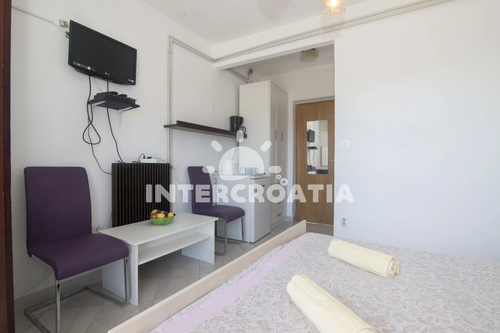 Apartmán se nachází 400 m od moře a pláže. Pláž je skalnatá, oblázková, větší kamení a betonové desky. U objektu je k dispozici společná zahrada s posezením a grilem. Parkování je před domem.