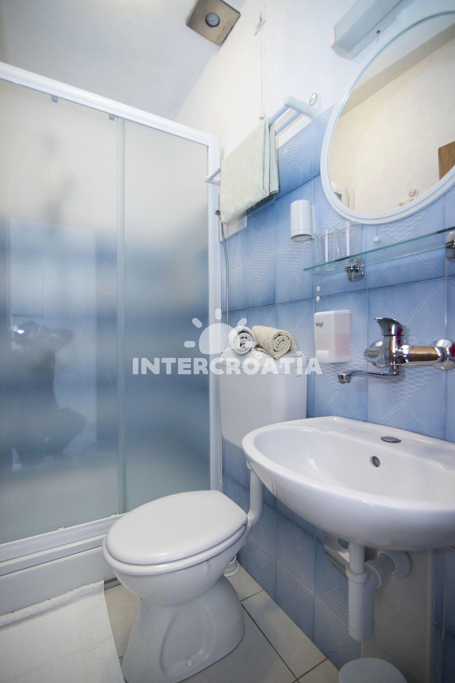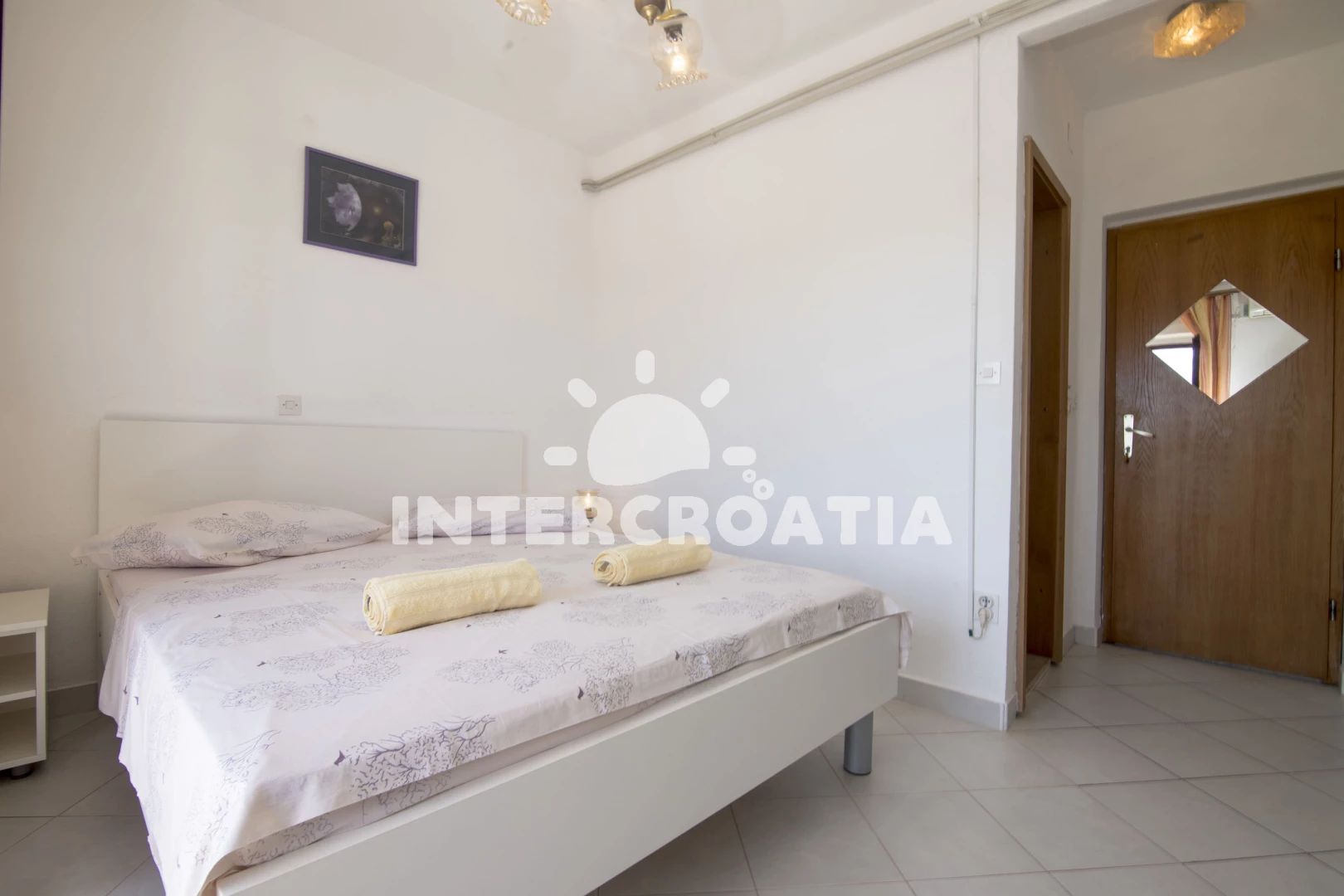 Apartmán se nachází 400 m od moře a pláže. Pláž je skalnatá, oblázková, větší kamení a betonové desky. U objektu je k dispozici společná zahrada s posezením a grilem. Parkování je před domem.