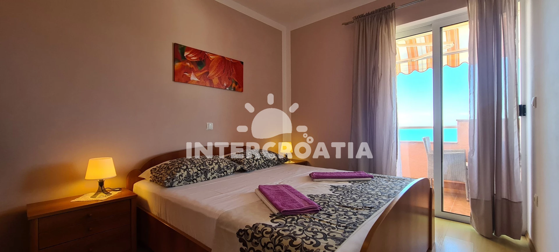 Apartmán se nachází 400 m od moře a pláže. Pláž je oblázková a betonové desky. U objektu je k dispozici společná zahrada s posezením a grilem. Parkování je před domem.