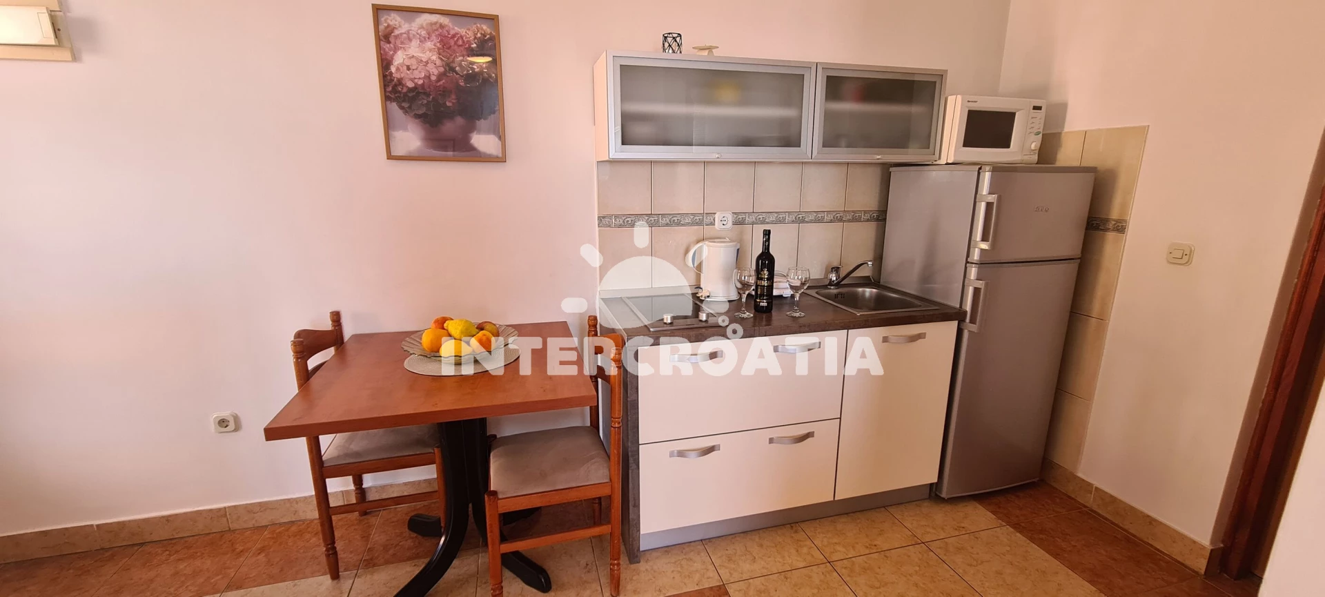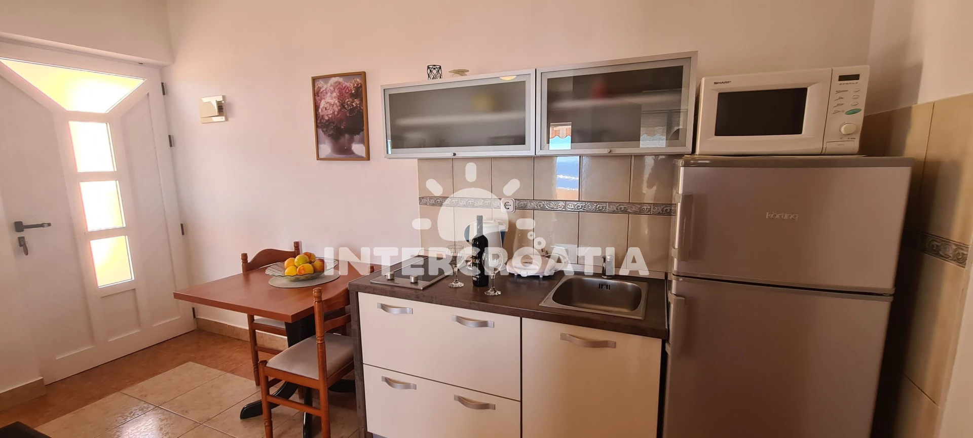 Apartmán se nachází 400 m od moře a pláže. Pláž je oblázková a betonové desky. U objektu je k dispozici společná zahrada s posezením a grilem. Parkování je před domem.