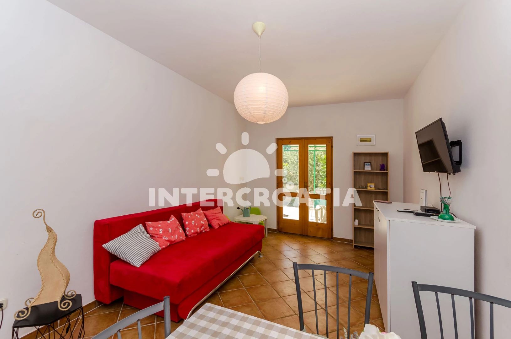 Apartmán se nachází 100 m od moře a pláže. Pláž je písčitá, oblázková a skalnatá. U objektu je k dispozici společná zahrada s posezením a grilem. Parkování je před domem.