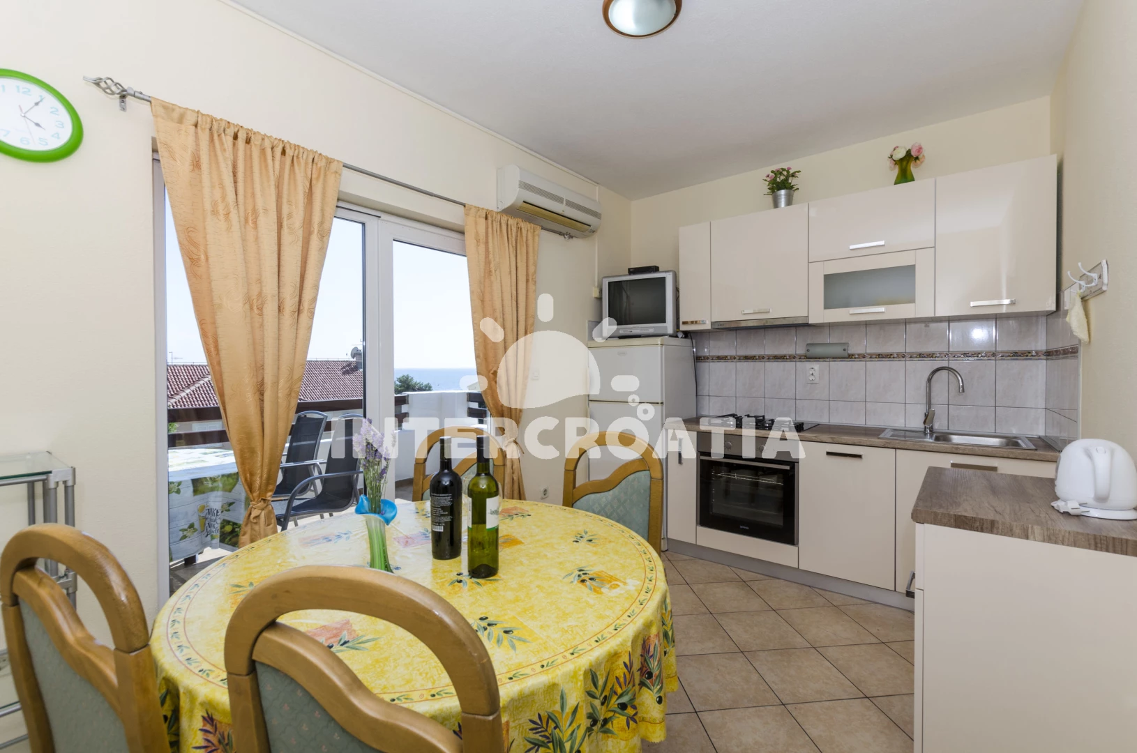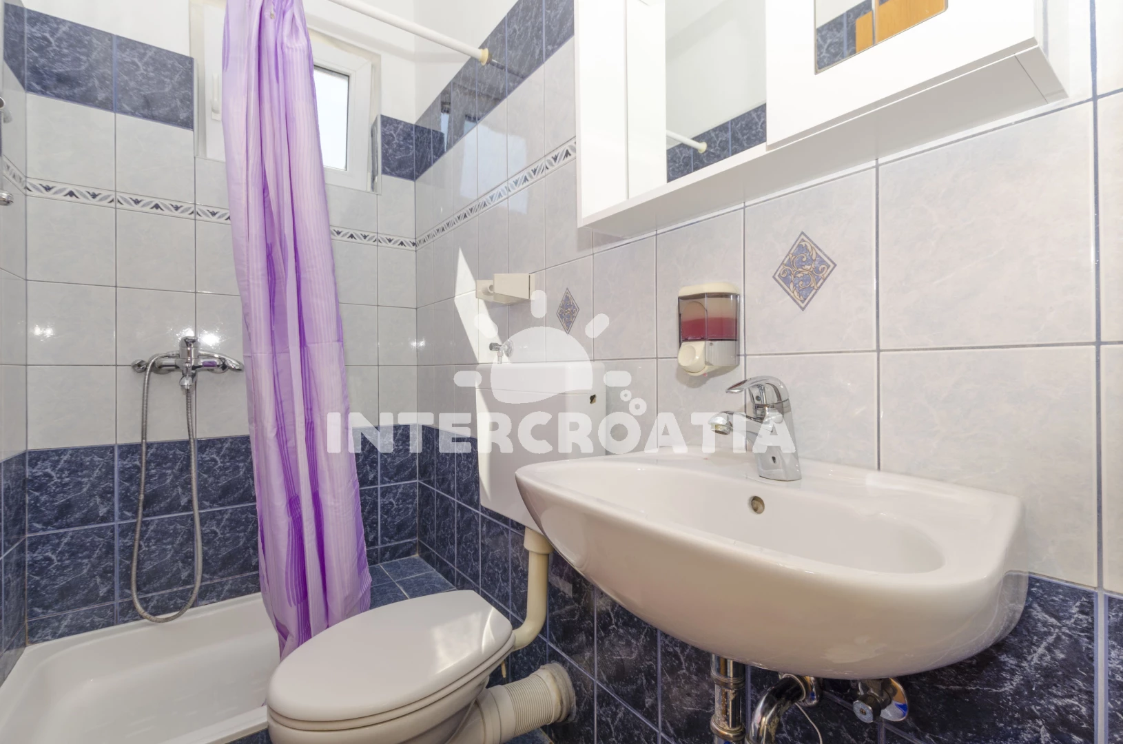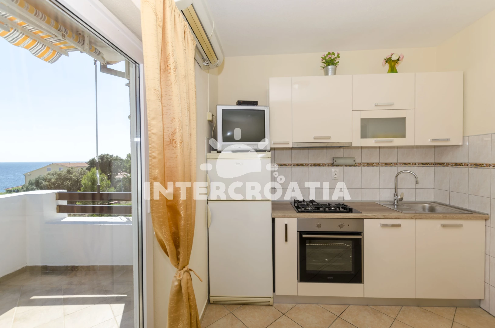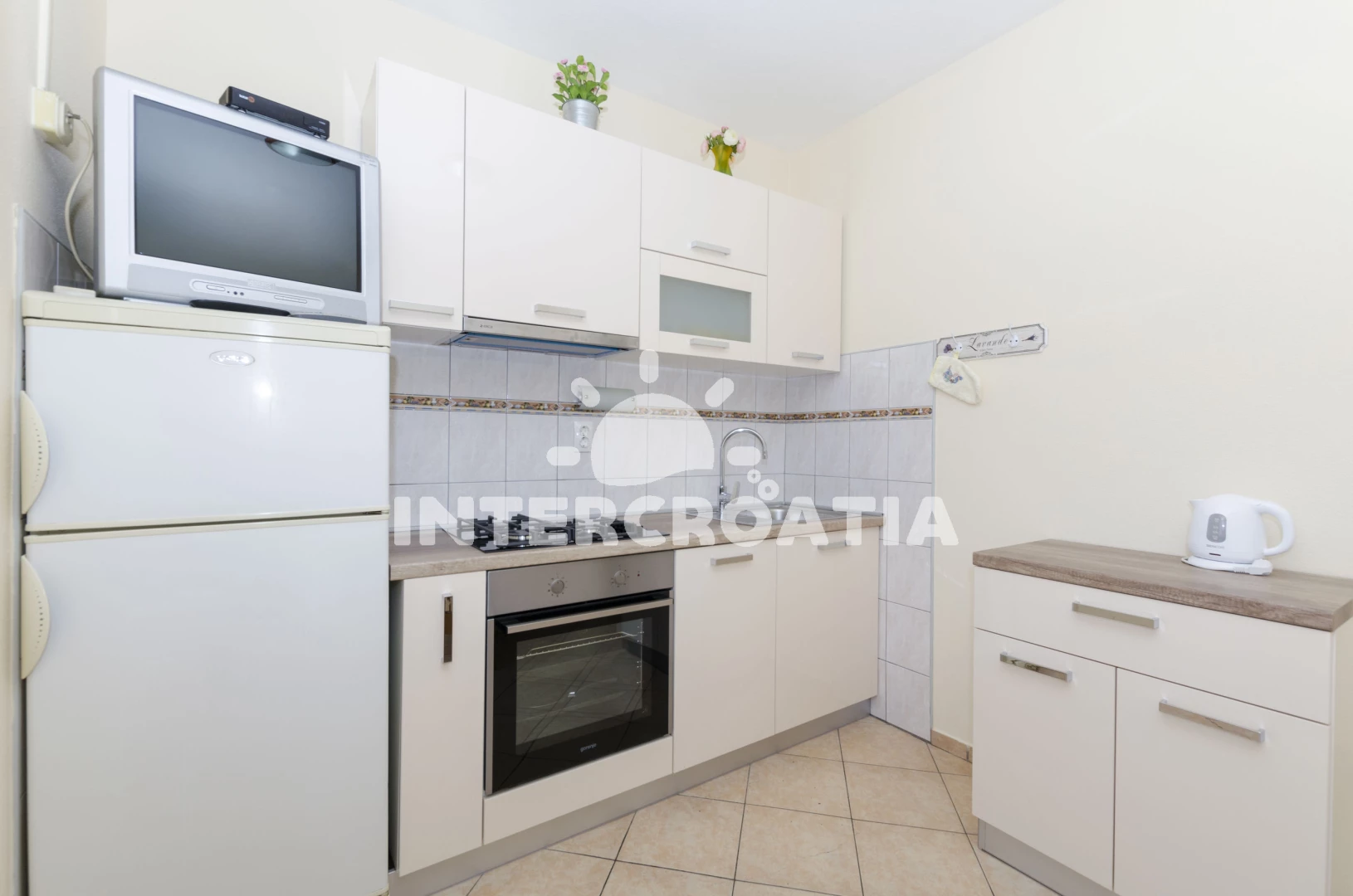 Apartmán se nachází 50 m od moře a pláže. Pláž je skalnatá, oblázková, větší kamení a betonové desky. U objektu je k dispozici společná zahrada s posezením a grilem. Parkování je před domem.