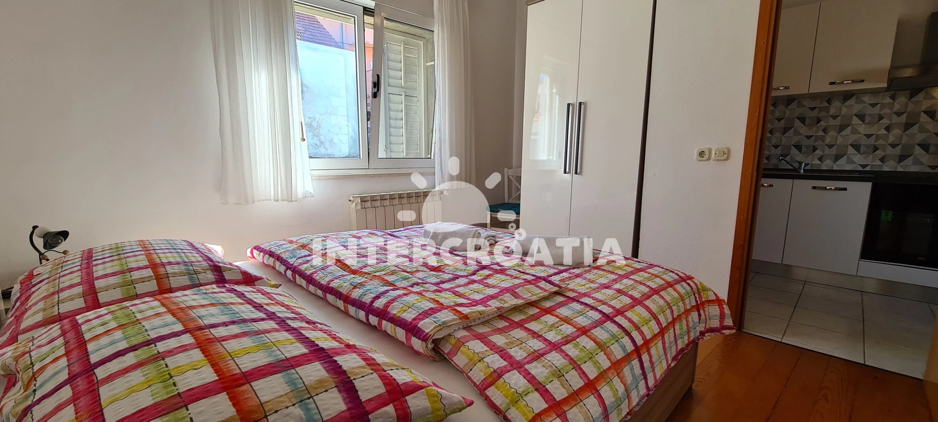 Apartmán se nachází 300 m od moře a pláže. Pláž je skalnatá, oblázková, větší kamení a betonové desky. Parkování je 150m - 300 m od domu.