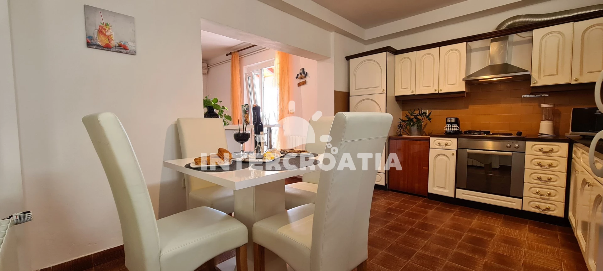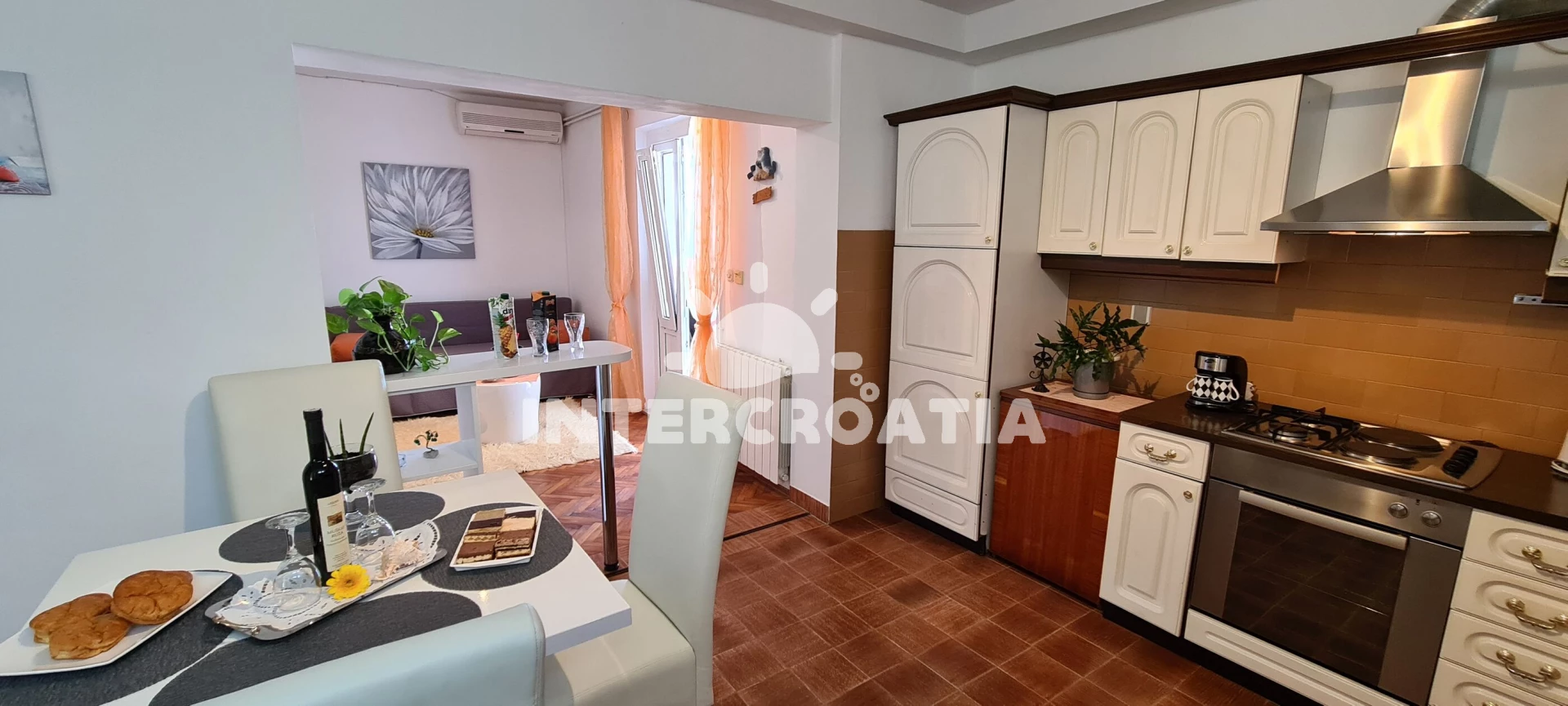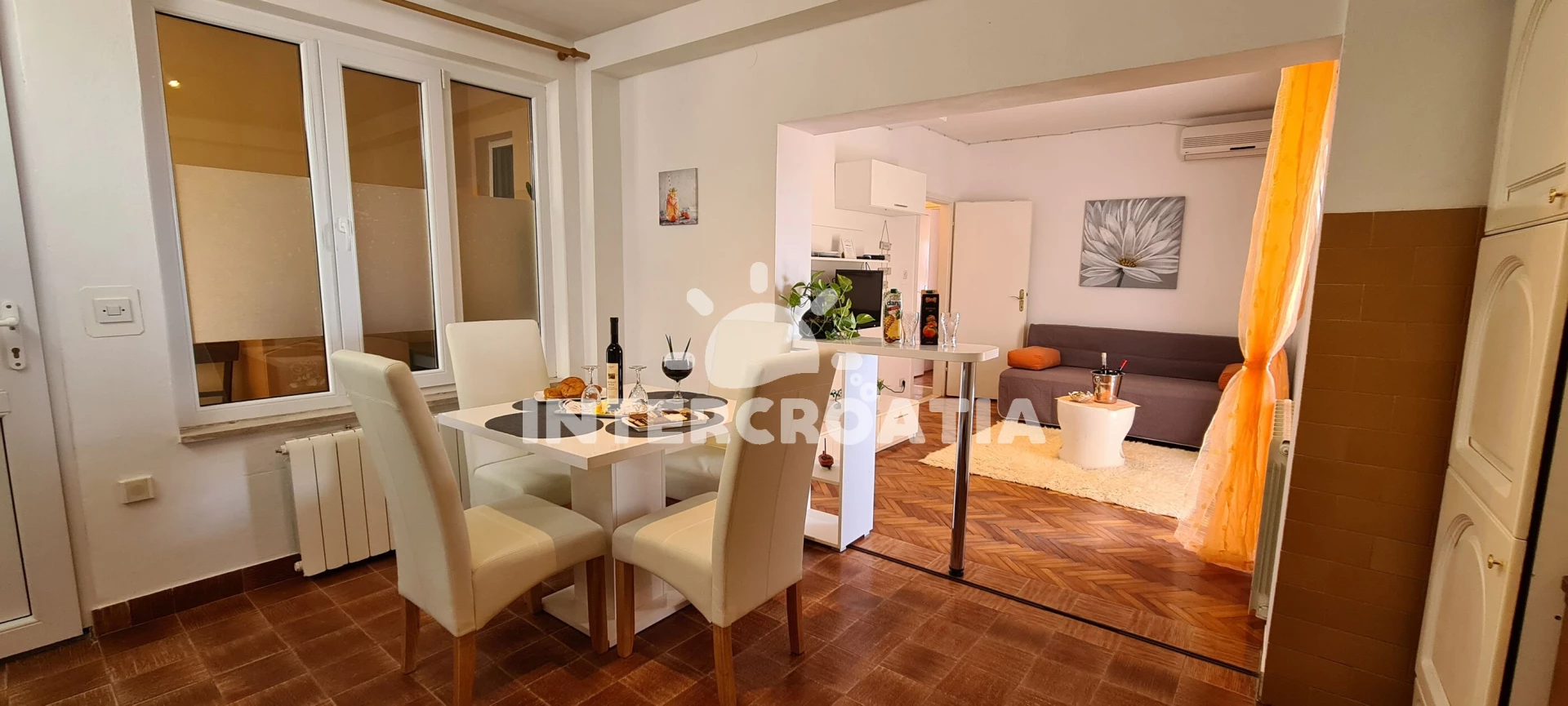 Apartmán se nachází 300 m od moře a pláže. Pláž je písčitá, skalnatá, oblázková, větší kamení a betonové desky. U objektu je k dispozici společná zahrada s posezením a grilem. Parkování je 50m - 150 m od domu.