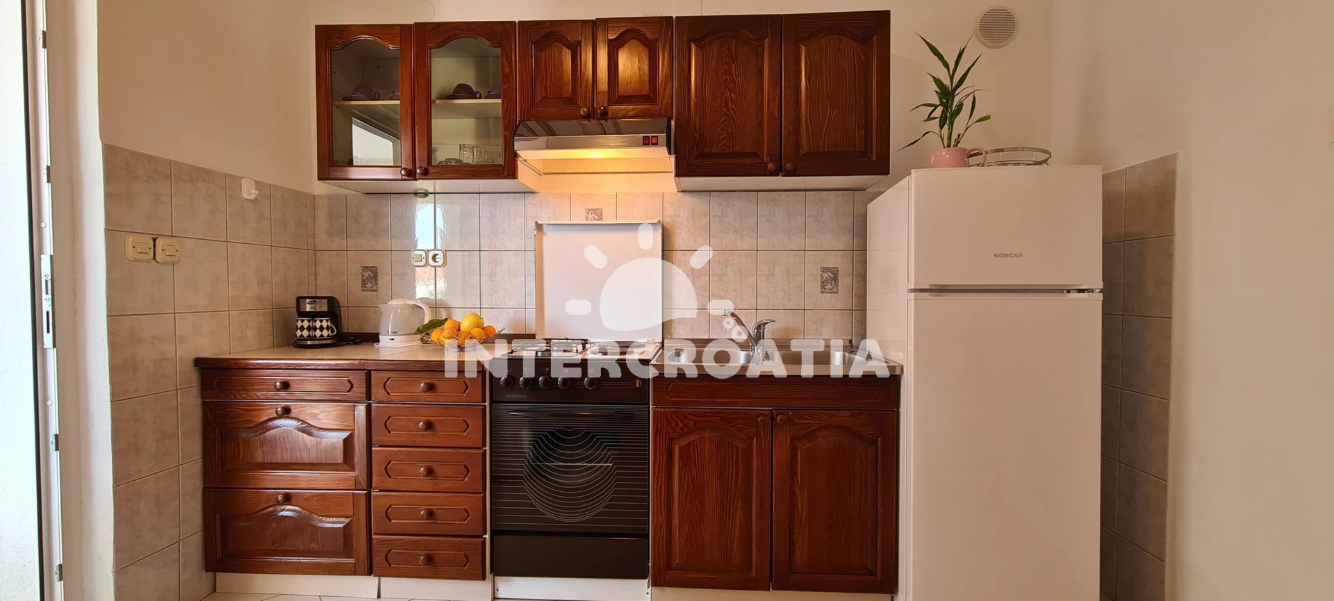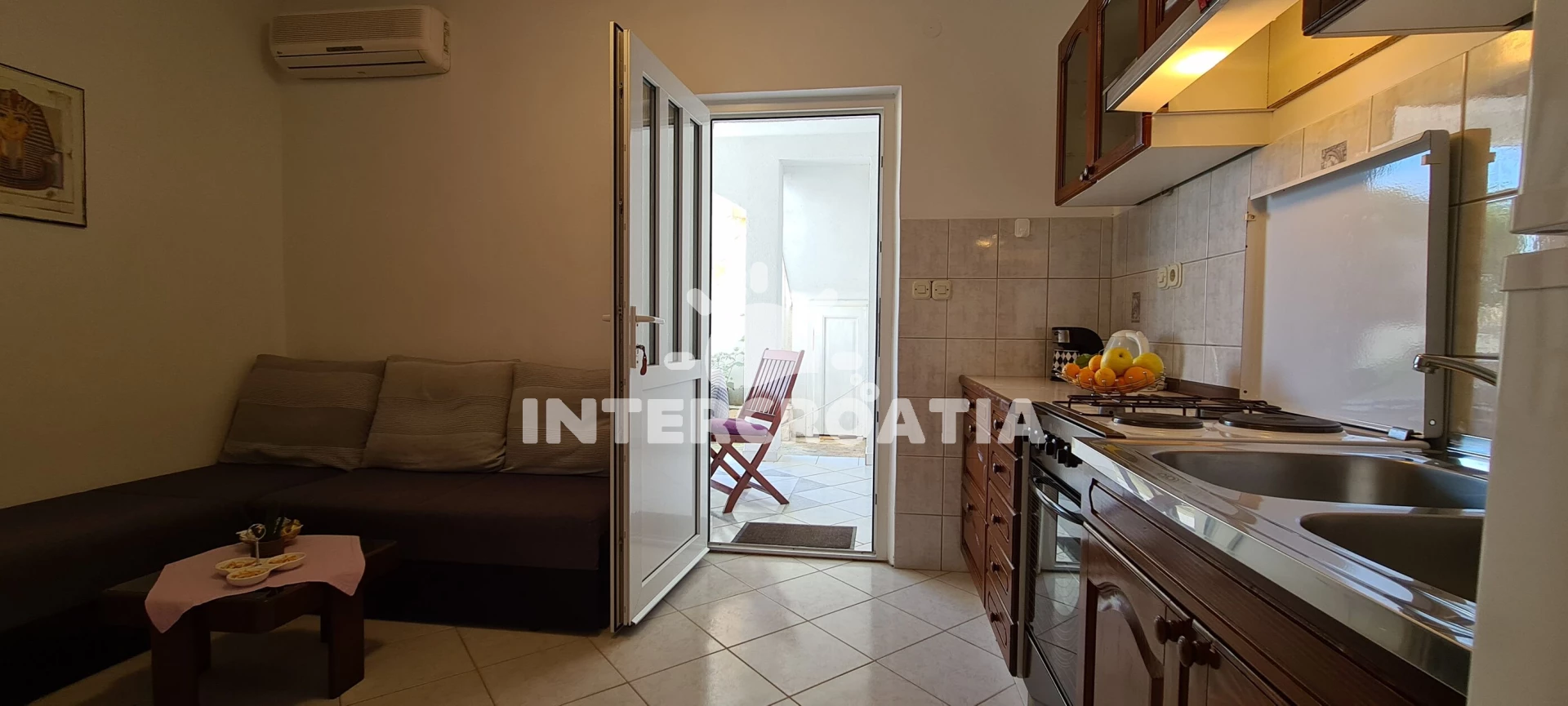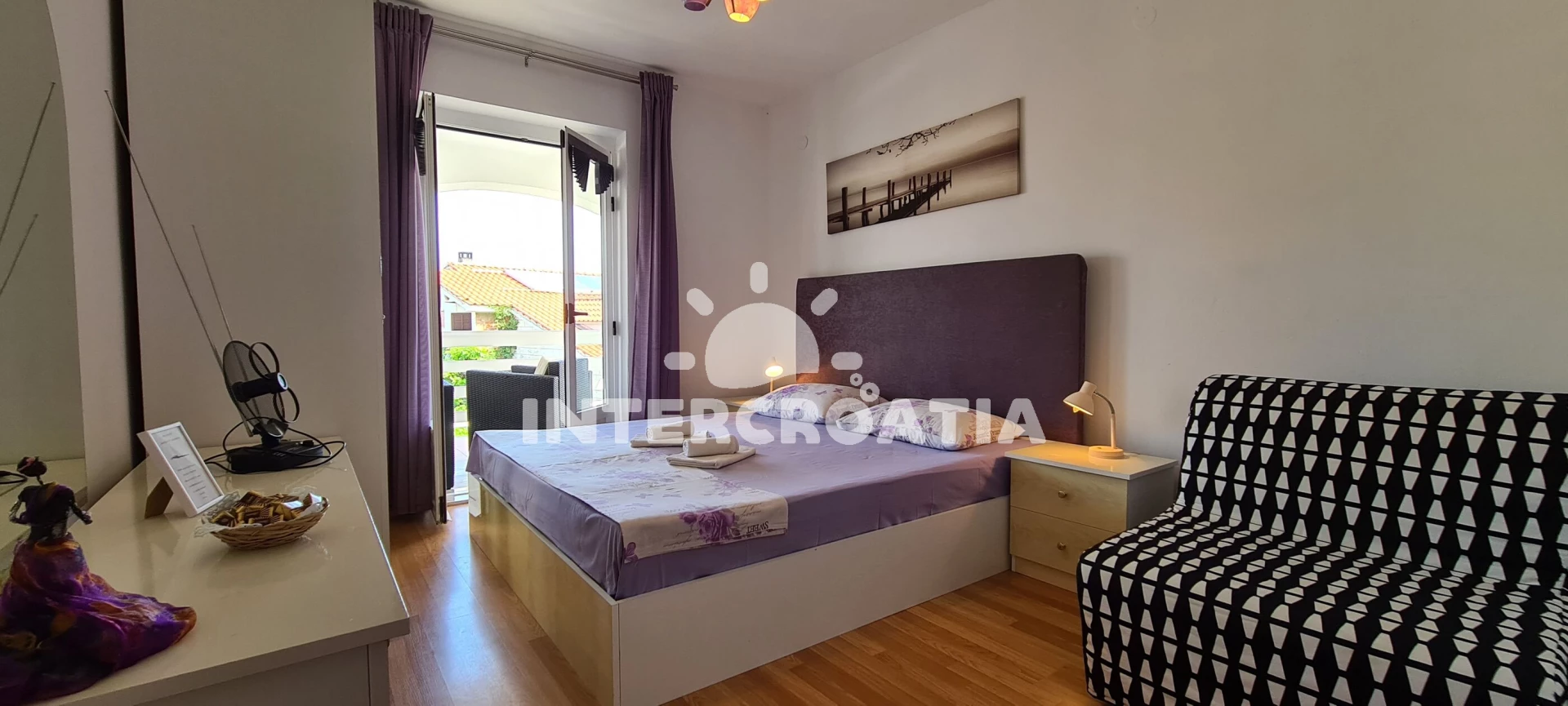 Apartmán se nachází 300 m od moře a pláže. Pláž je písčitá, skalnatá, oblázková, větší kamení a betonové desky. U objektu je k dispozici společná zahrada s posezením a grilem. Parkování je 50m - 150 m od domu.