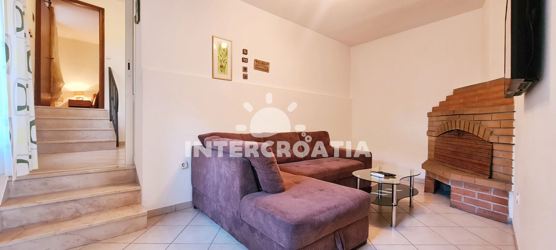 Apartmán se nachází 3000 m od moře a pláže. Pláž je skalnatá, oblázková, větší kamení a betonové desky. U objektu je k dispozici společná zahrada s posezením a grilem. Parkování je před domem.