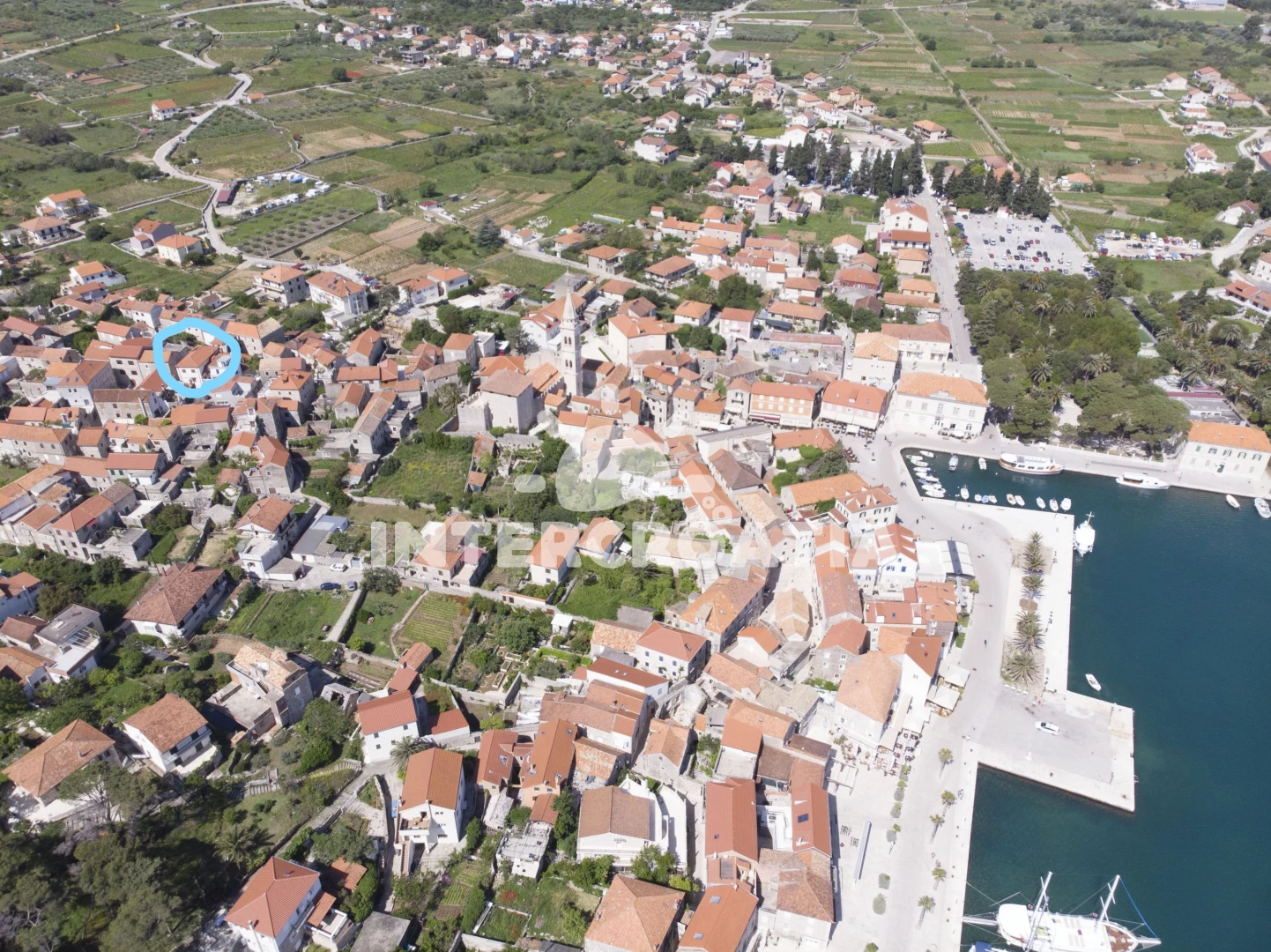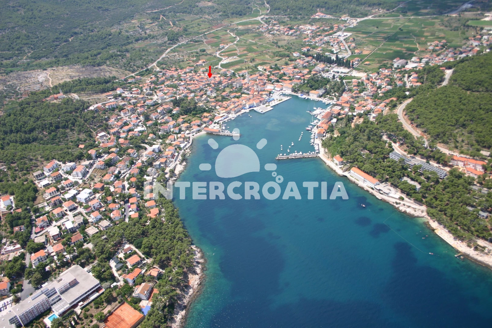 Vzdálenosti: Moře 100 m, pláž 500 m (skalnatá, oblázková, větší kamení a betonové desky), centrum 70 m, směnárna 100 m, supermarket 100 m, restaurace 200 m, bar 200 m, banka 200 m, čerpací stanice 300 m, pošta 300 m, lékárna 300 m, muzeum 300 m, půjčovna kol 500 m, veřejná doprava 500 m, půjčovna motorových člunů 500 m, diskotéka 800 m, ambulance 1 km, trajekt (Stari Grad) 15,0 km,