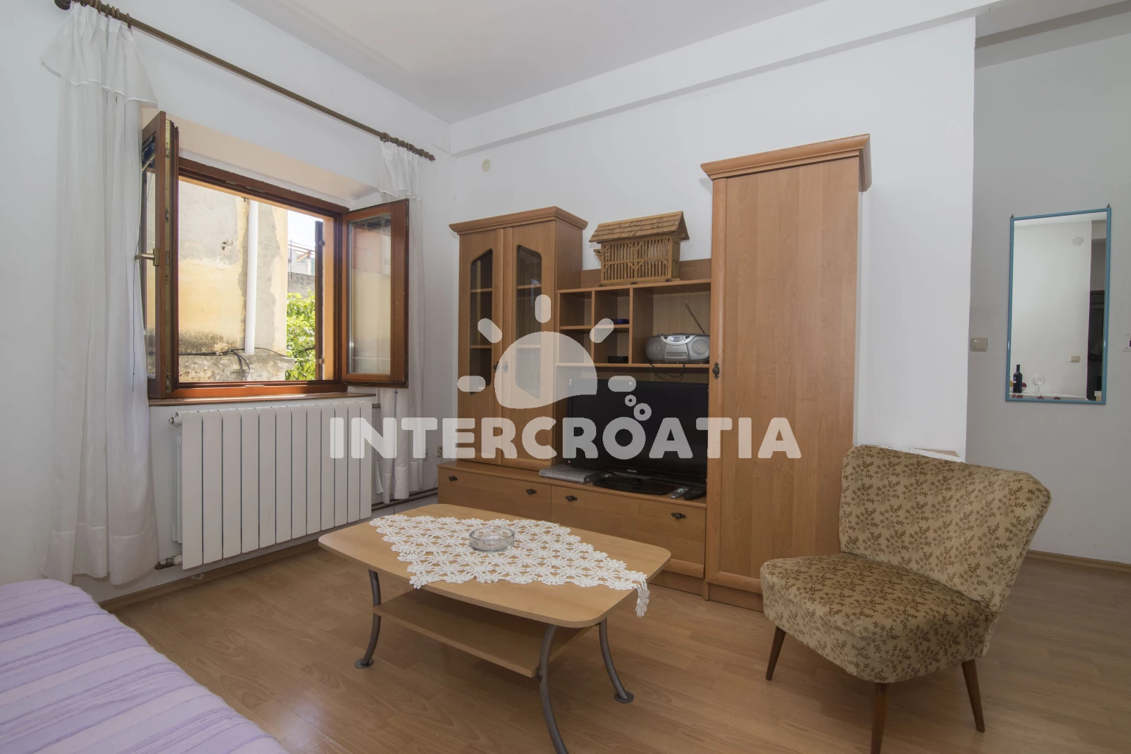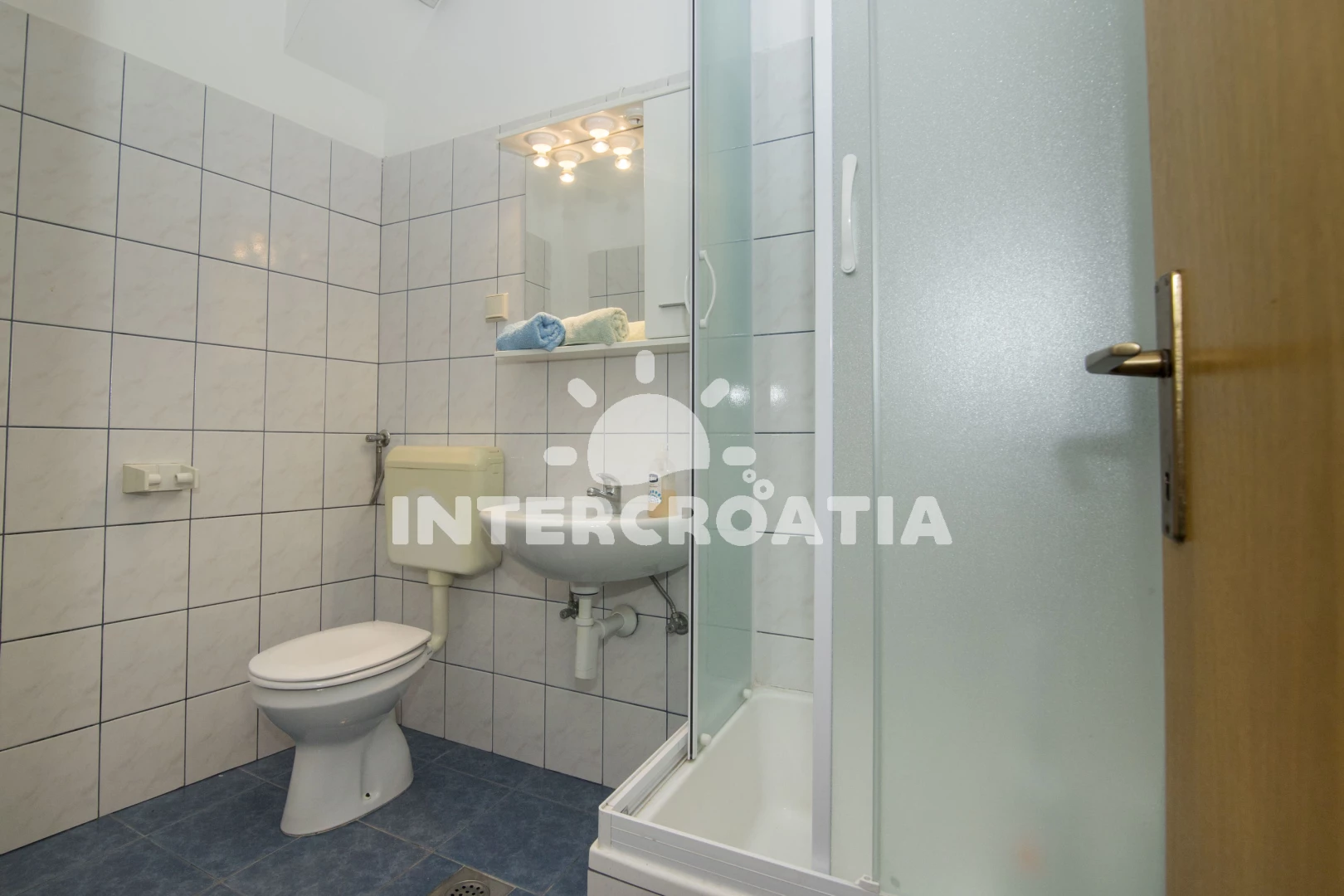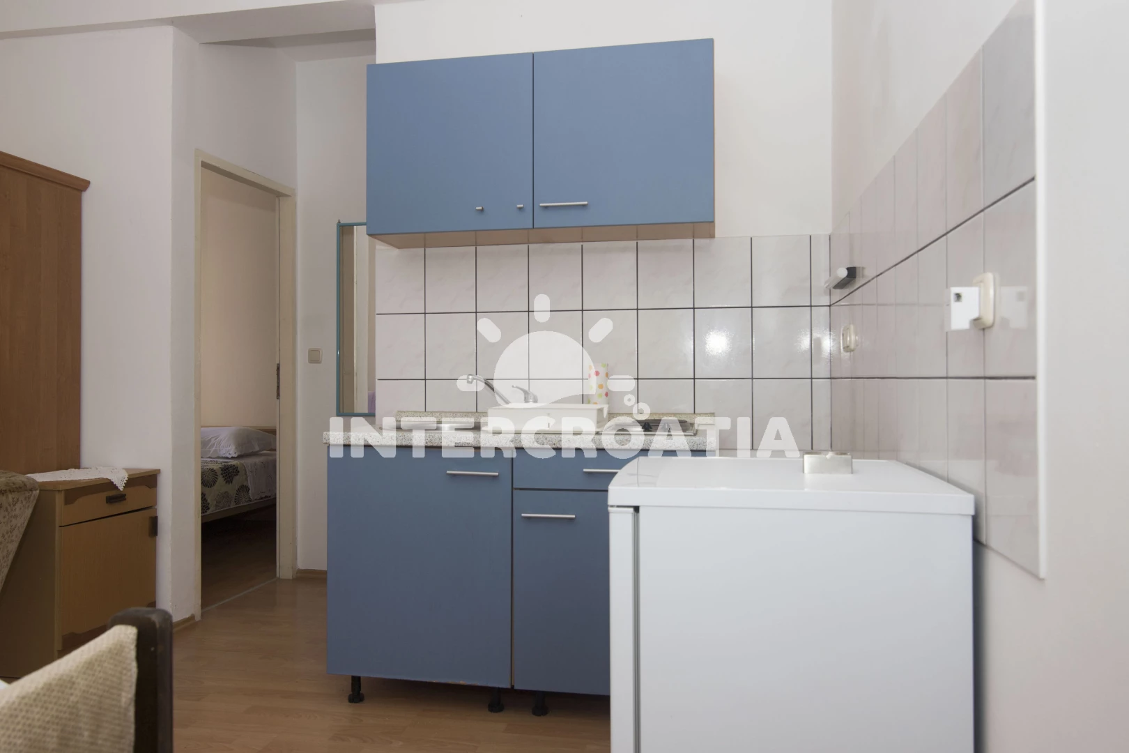 Apartmán se nachází 500 m od moře a pláže. Pláž je skalnatá, oblázková, větší kamení a betonové desky. U objektu je k dispozici společná zahrada s posezením a grilem. Parkování je 150m - 300 m od domu.