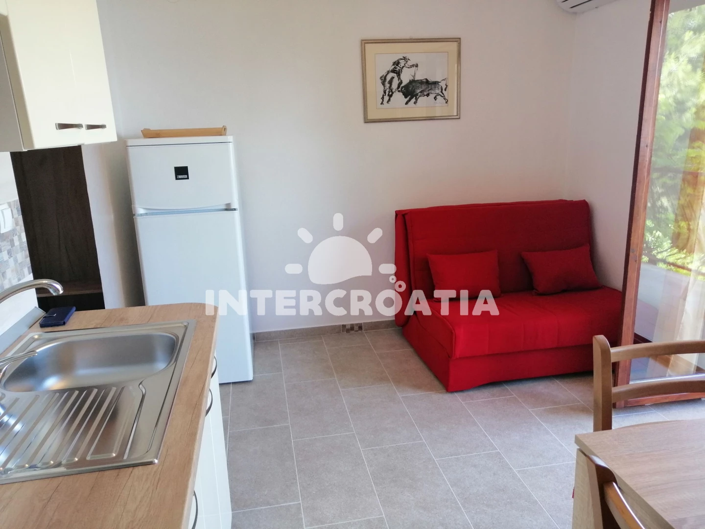 Apartmán (35 m2) s balkonem, a výhledem na moře. Nachází se v přízemí objektu. Apartmán má 1 ložnici a je vhodný pro až 3 osoby. Kuchyňská linka je vybavena varnou deskou, troubou, kávovarem,…