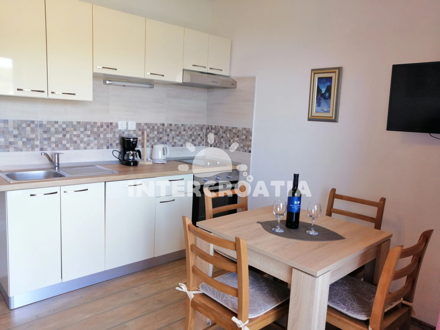 Apartmán (35 m2) s balkonem, a výhledem na moře. Nachází se v přízemí objektu. Apartmán má 1 ložnici a je vhodný pro až 3 osoby. Kuchyňská linka je vybavena varnou deskou, troubou, kávovarem,…