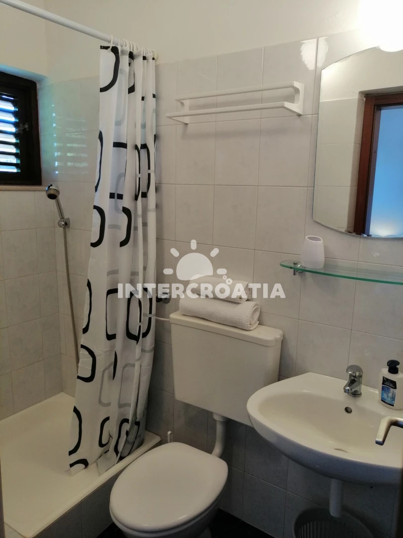 Apartmán se nachází 150 m od moře a pláže. Pláž je oblázková a betonové desky. U objektu je k dispozici společná zahrada s posezením a grilem. Parkování je před domem.
