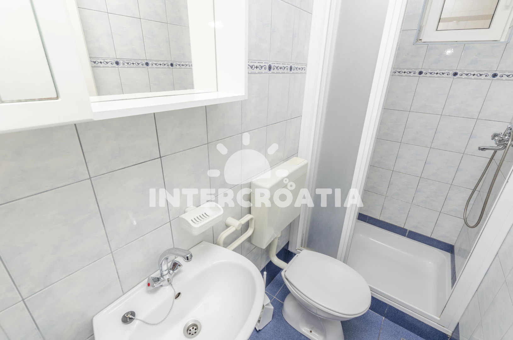 Apartmán se nachází 100 m od moře a pláže. Pláž je kamenné a betonové desky. U objektu je k dispozici společná zahrada s posezením a grilem.