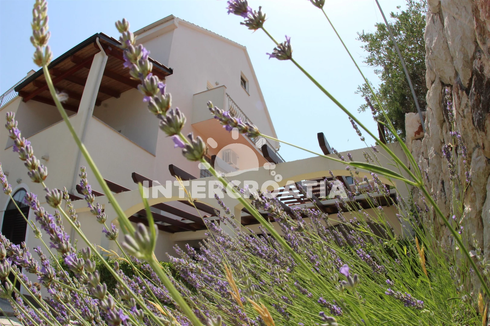 Apartmán se nachází 50 m od moře a pláže. Pláž je skalnatá a větší kamení. Apartmán disponuje bazénem s lehátky pro ubytované hosty. U objektu je k dispozici společná zahrada s posezením a grilem. Parkování je před domem.