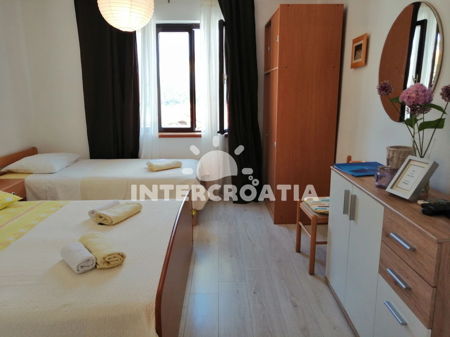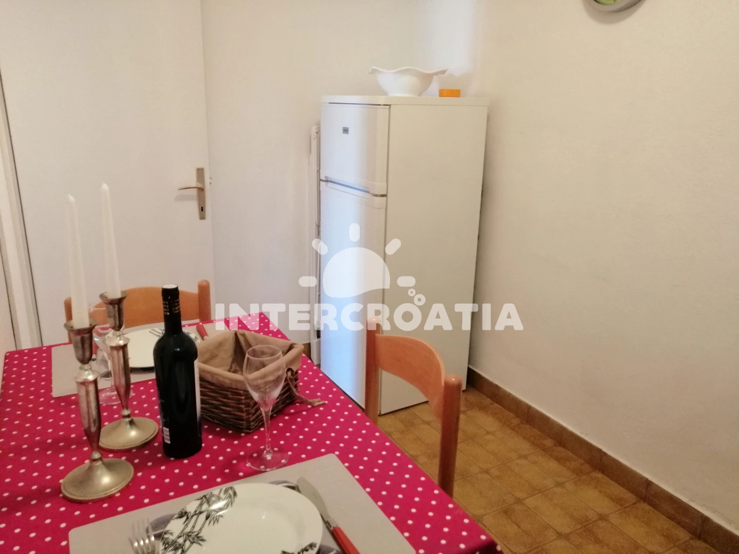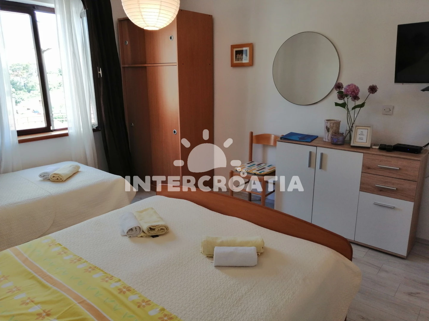 Apartmán se nachází 200 m od moře a pláže. Pláž je skalnatá, oblázková, větší kamení a betonové desky. Parkování je před domem.