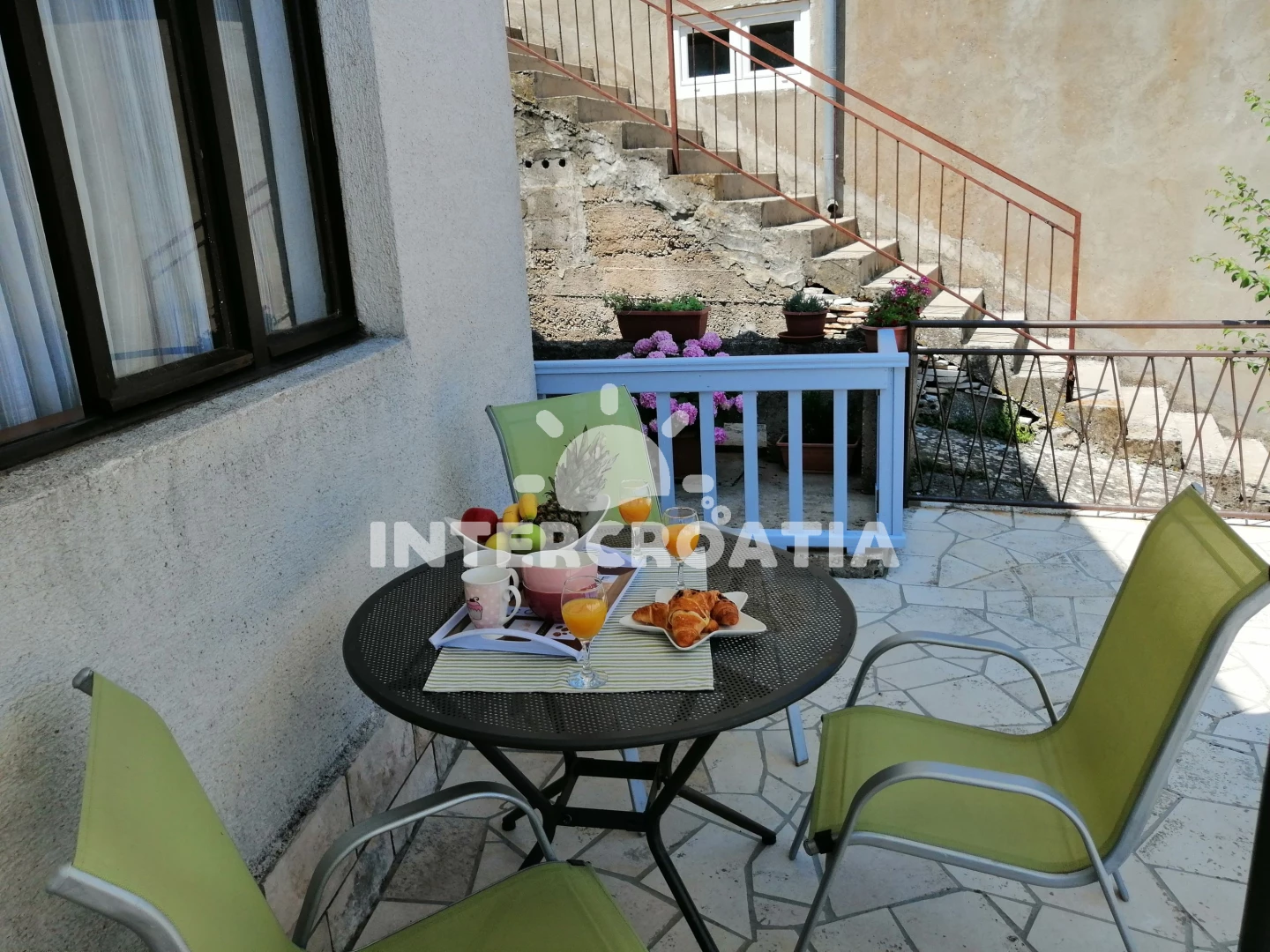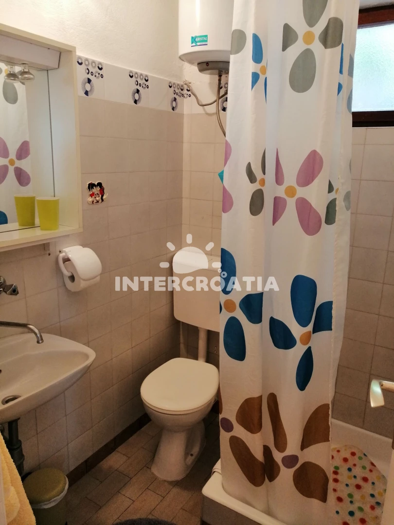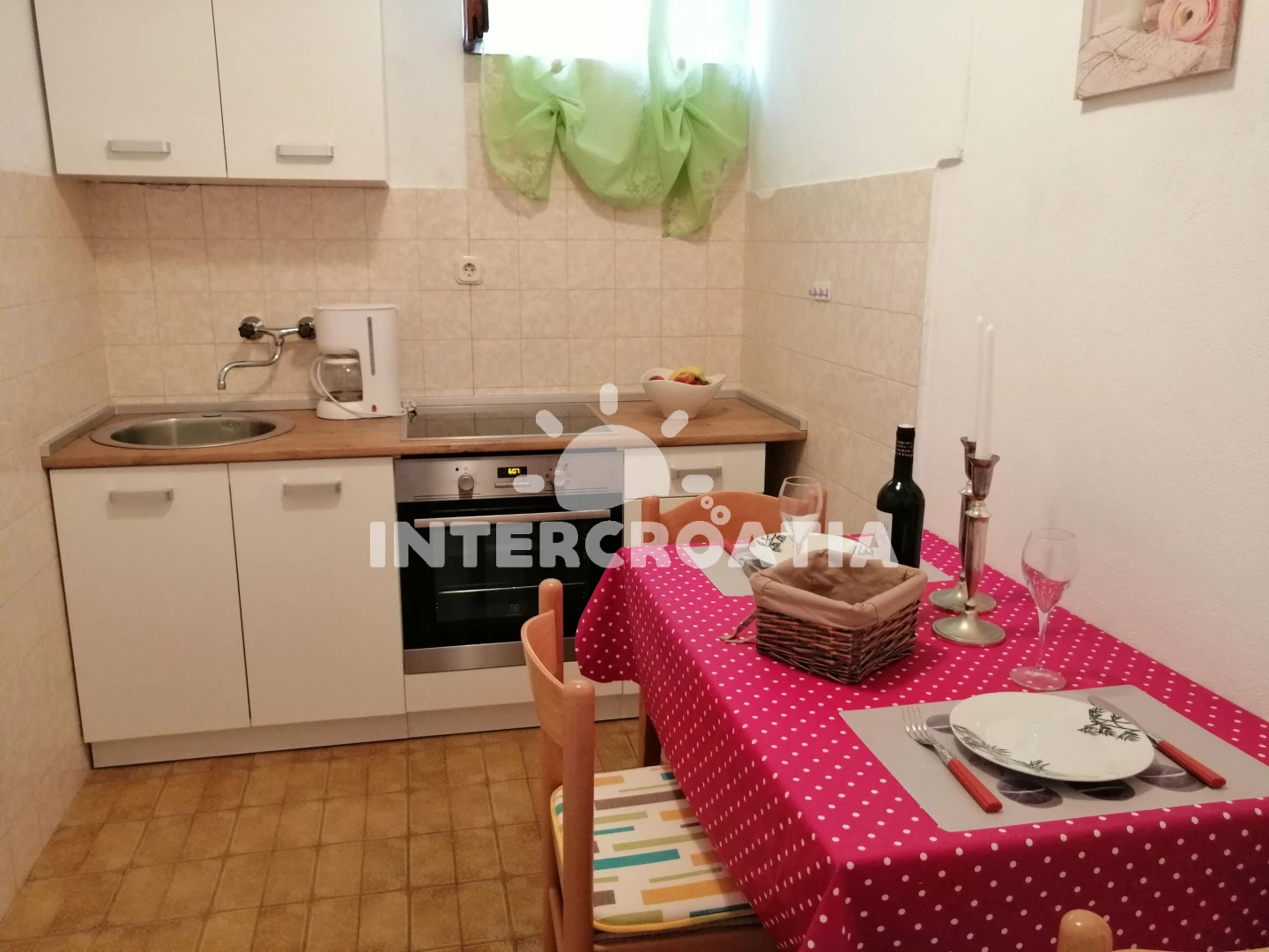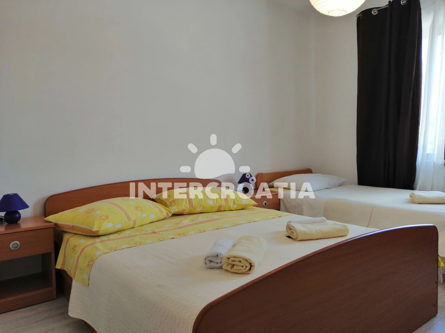 Apartmán se nachází 200 m od moře a pláže. Pláž je skalnatá, oblázková, větší kamení a betonové desky. Parkování je před domem.