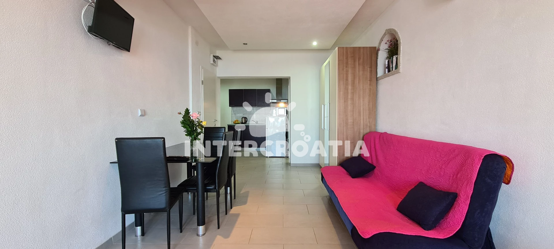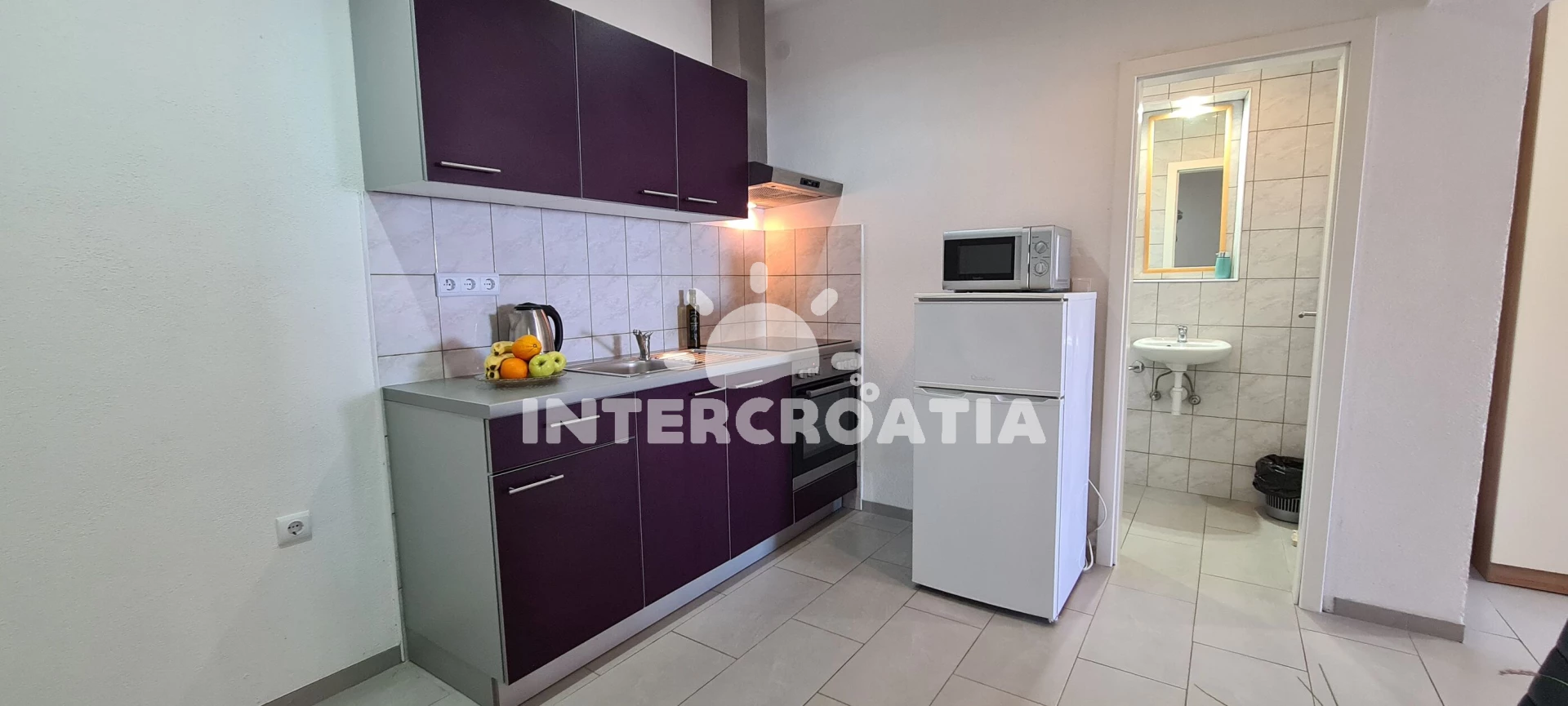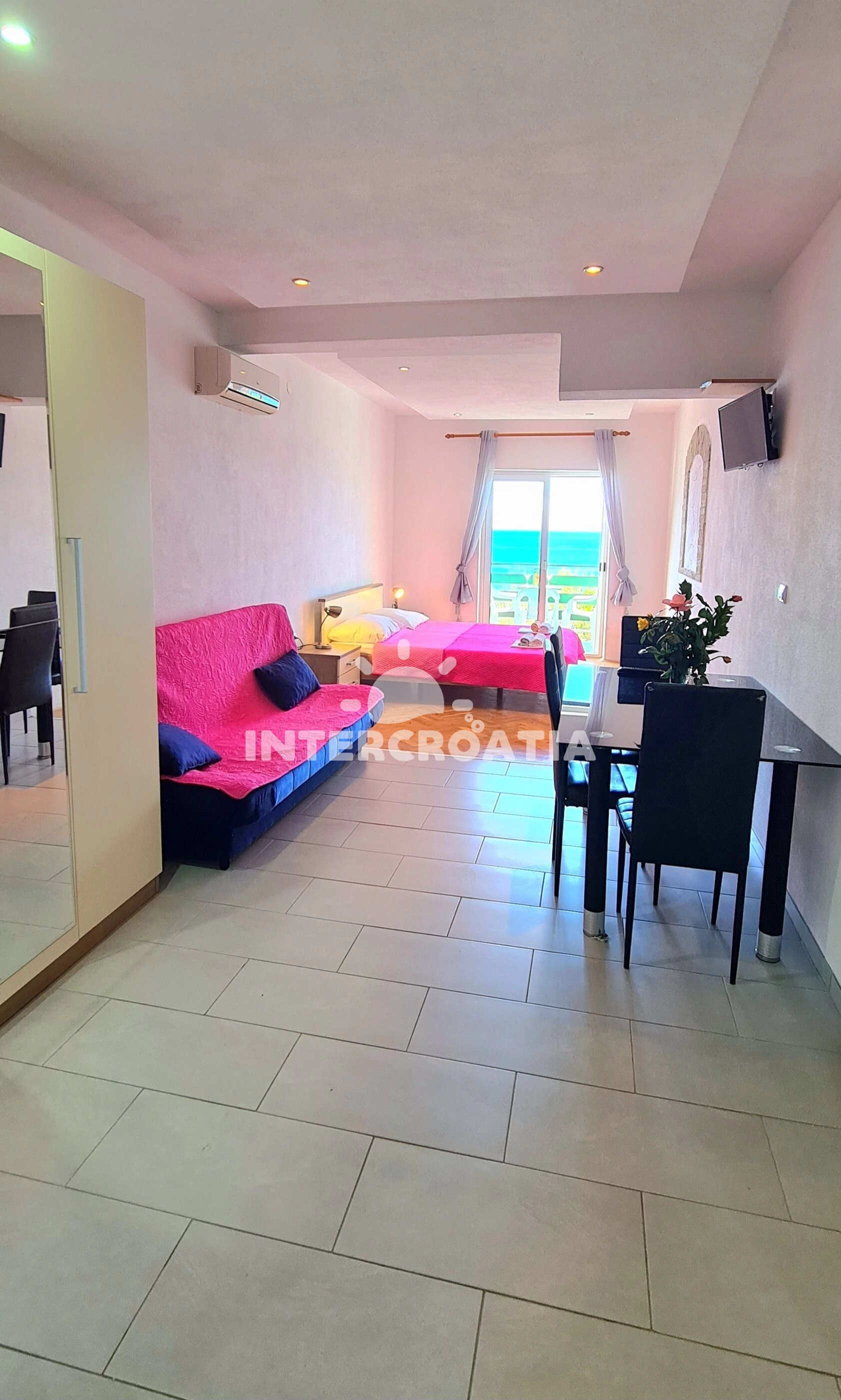 Apartmán (30 m2) typu studio s balkonem, a výhledem na moře. Nachází se v 1. patře objektu. Kuchyňská linka je vybavena varnou deskou, mikrovlnnou troubou, rychlovarnou konvicí, nádobím, lednicí,…