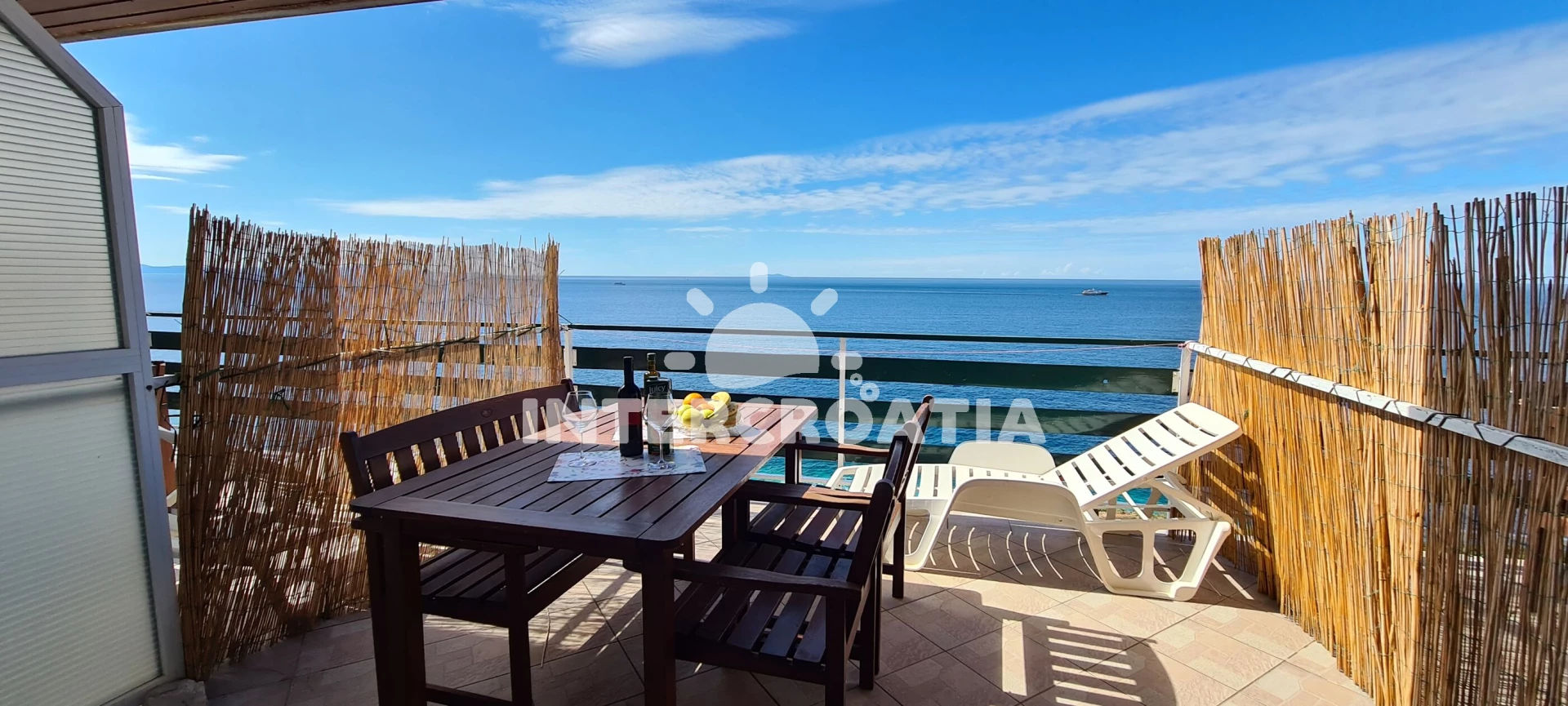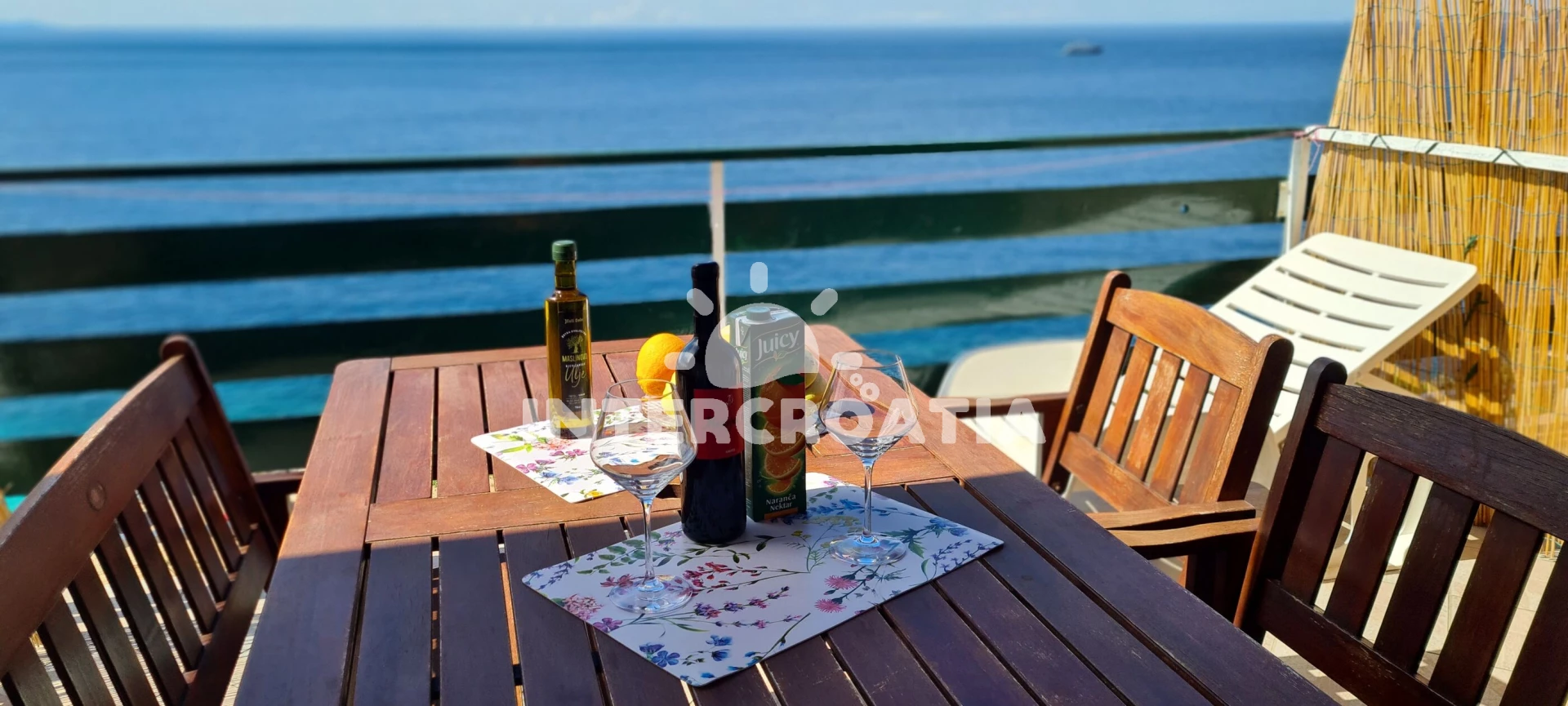 Apartmán se nachází 100 m od moře a pláže. Pláž je skalnatá, oblázková, větší kamení a betonové desky. U objektu je k dispozici společná zahrada s posezením a grilem. Parkování je před domem.