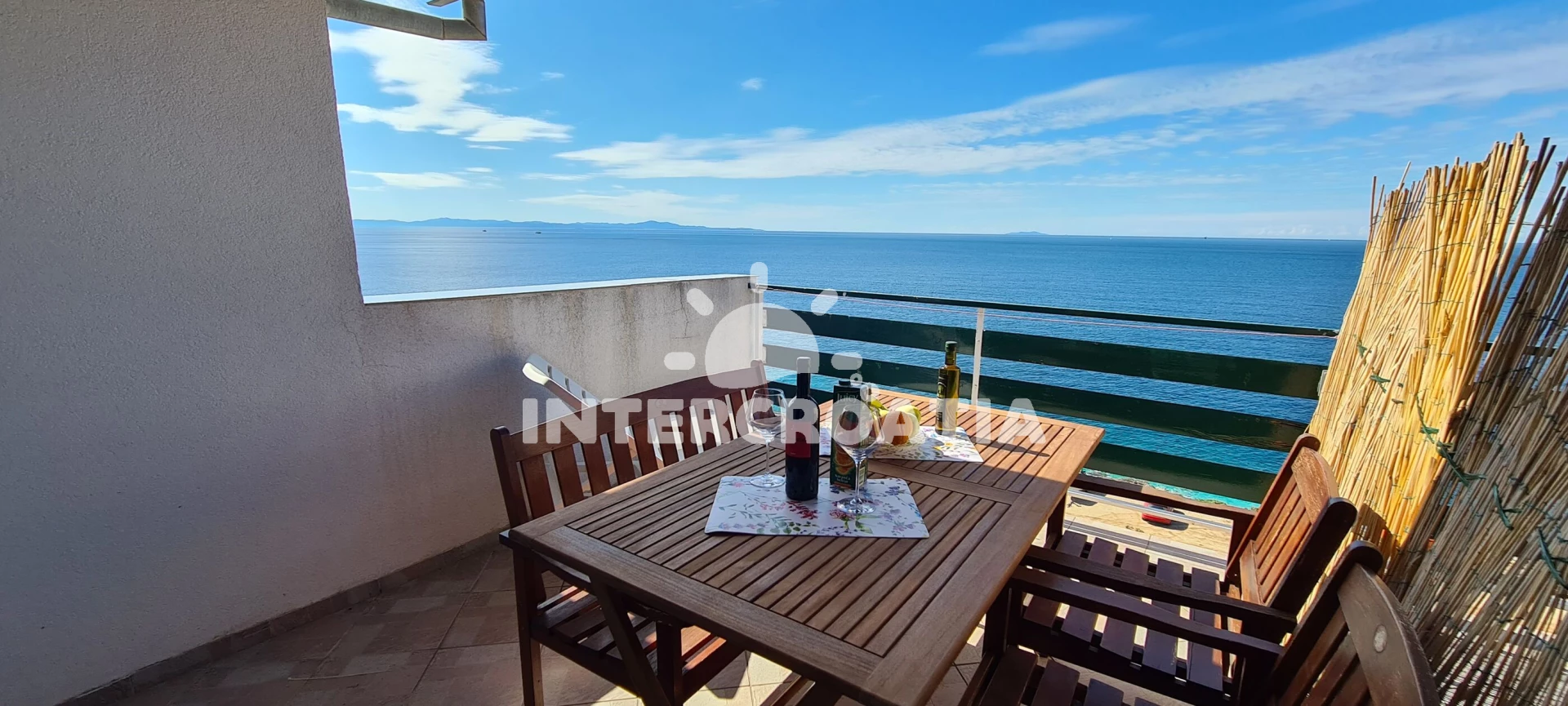 Apartmán se nachází 100 m od moře a pláže. Pláž je skalnatá, oblázková, větší kamení a betonové desky. U objektu je k dispozici společná zahrada s posezením a grilem. Parkování je před domem.