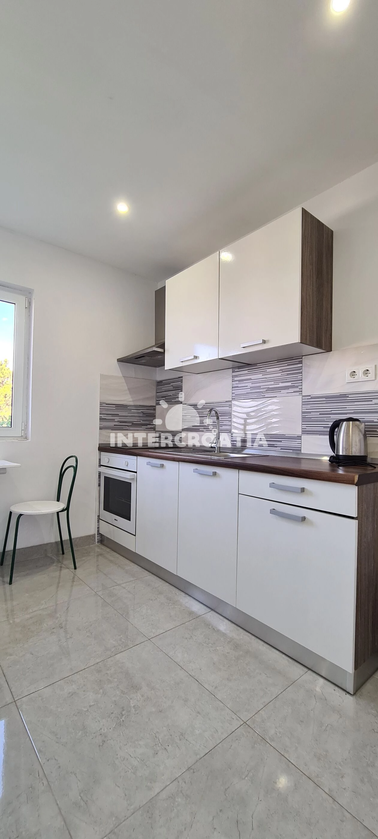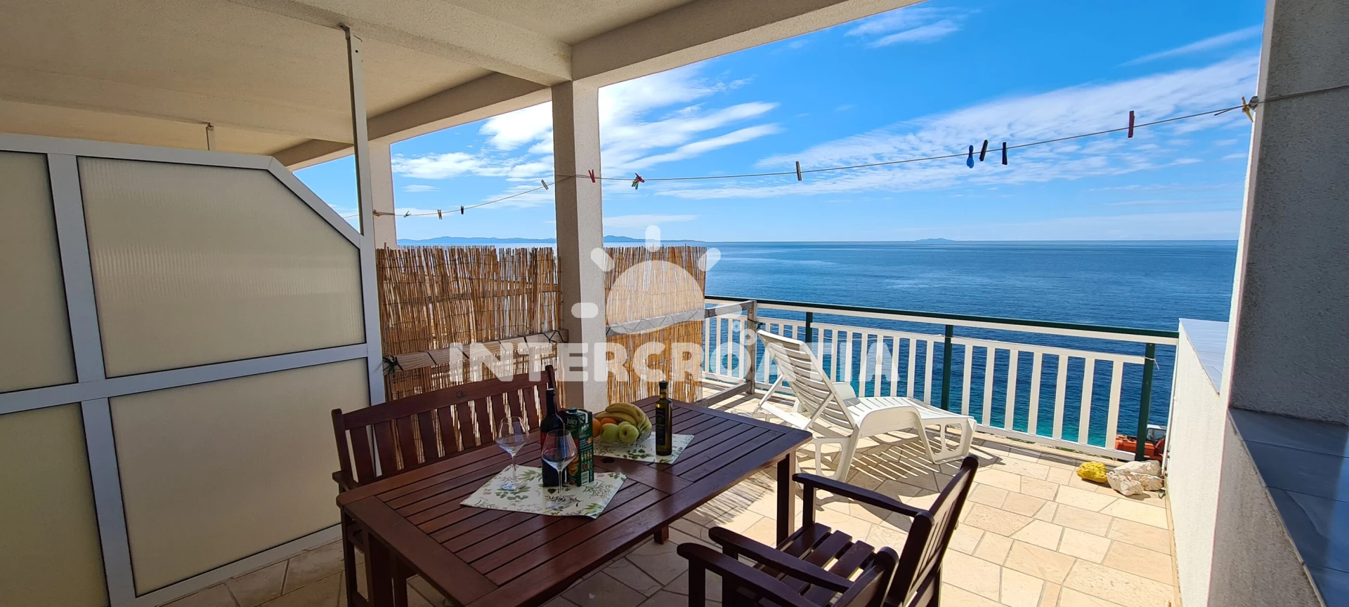 Apartmán se nachází 100 m od moře a pláže. Pláž je skalnatá, oblázková, větší kamení a betonové desky. U objektu je k dispozici společná zahrada s posezením a grilem. Parkování je před domem.