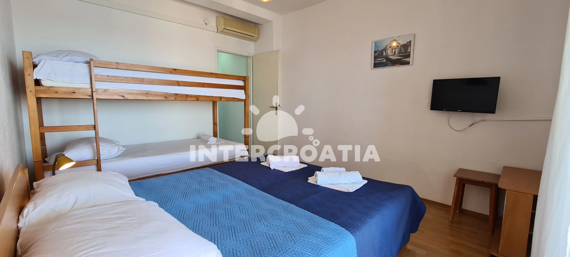 Apartmán (35 m2) s terasou, a výhledem na moře. Nachází se ve 2. patře objektu. Apartmán má 1 ložnici a je vhodný pro až 3 osoby. Kuchyňská linka je vybavena varnou deskou, rychlovarnou konvicí, nádobím, lednicí, mrazákem. K dispozici televize, žehlička. Ložnice s dvoulůžkem, přistýlkou. Koupelna se sprchovým koutem, umyvadlem, fénem a WC.