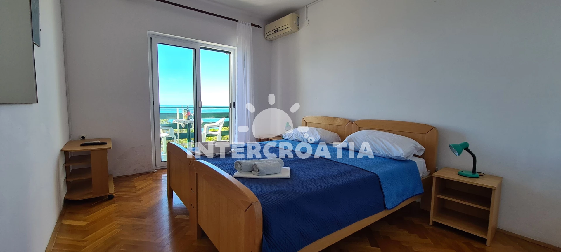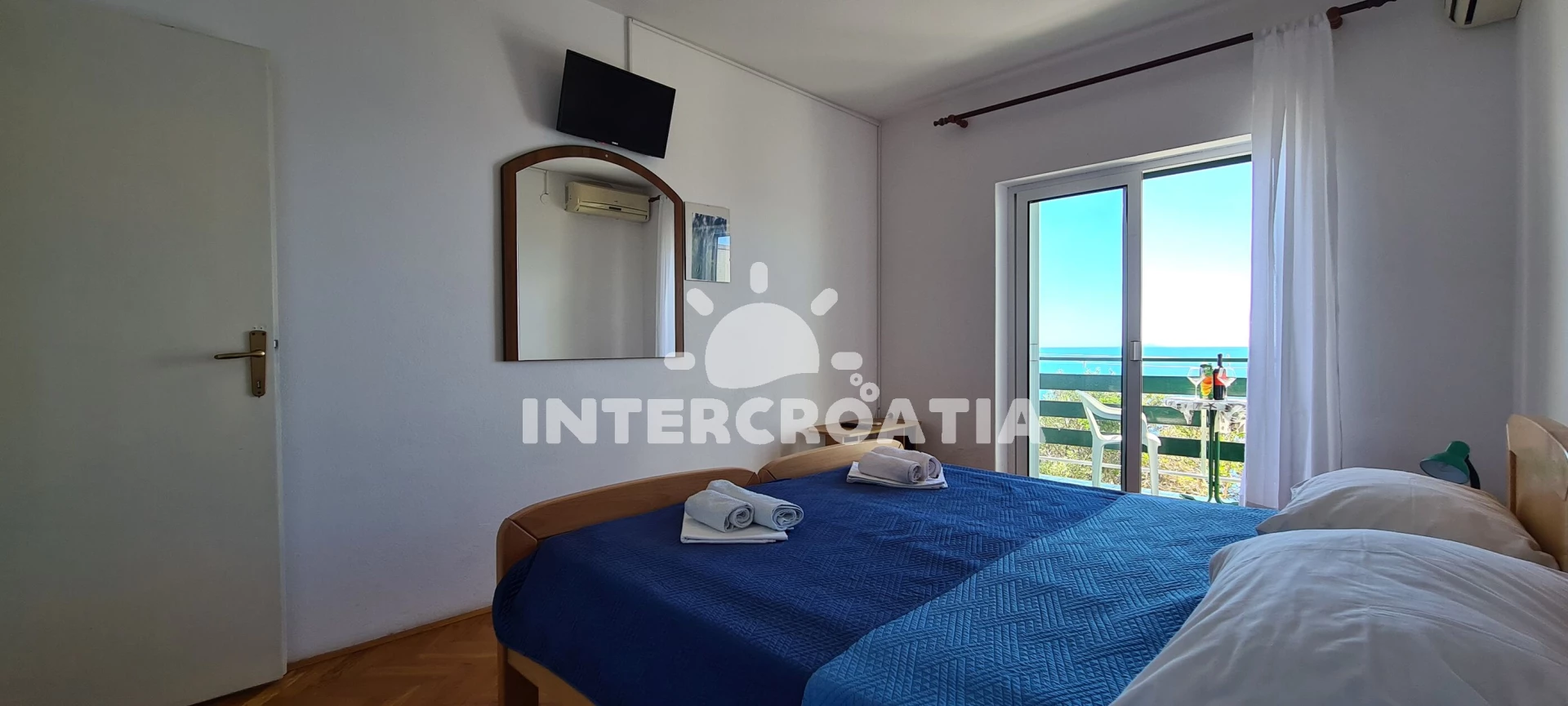 Apartmán (25 m2) s balkonem, a výhledem na moře. Nachází se v 1. patře objektu. Apartmán má 1 ložnici a je vhodný pro až 2 osoby. Kuchyňská linka je vybavena varnou deskou, rychlovarnou konvicí, nádobím, lednicí, mrazákem. K dispozici televize, žehlička. Ložnice s dvoulůžkem. Koupelna se sprchovým koutem, umyvadlem, fénem a WC.