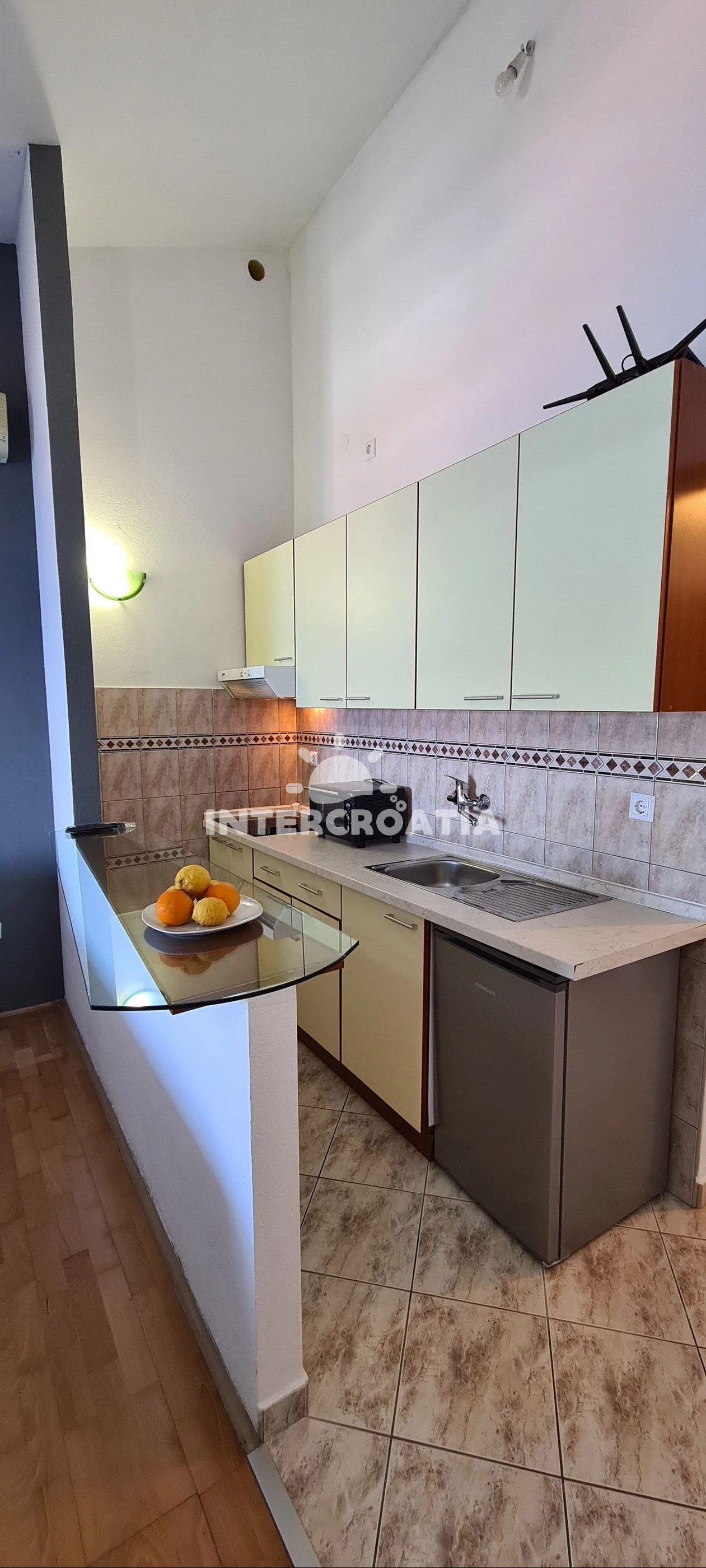 Apartmán (28 m2) typu studio s balkonem, a výhledem na moře. Nachází se ve 3. patře objektu. Kuchyňská linka je vybavena varnou deskou, kávovarem, mikrovlnnou troubou, rychlovarnou konvicí, nádobím,…